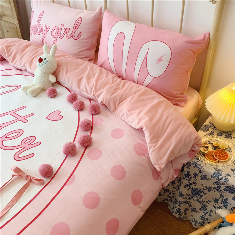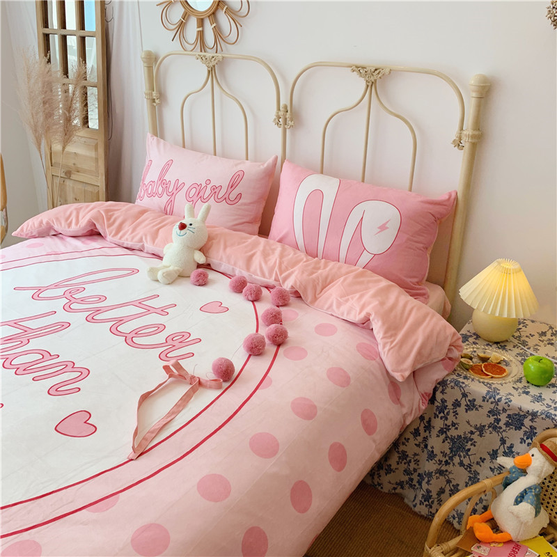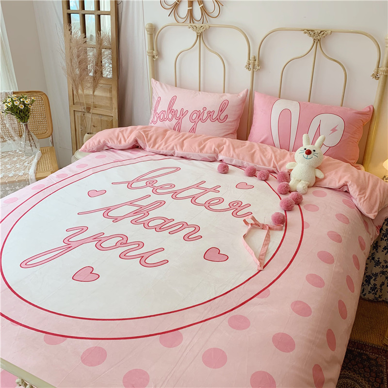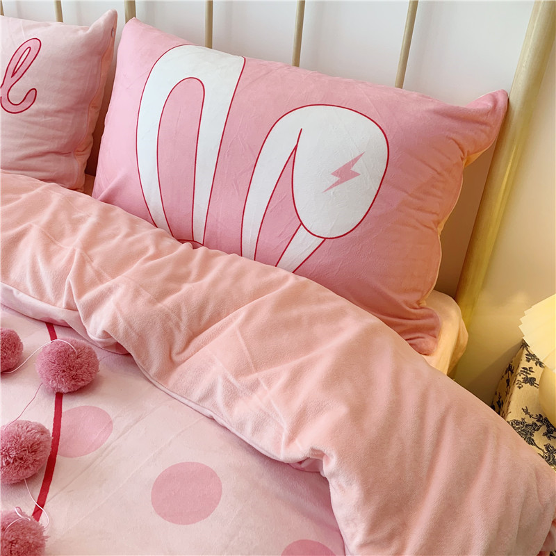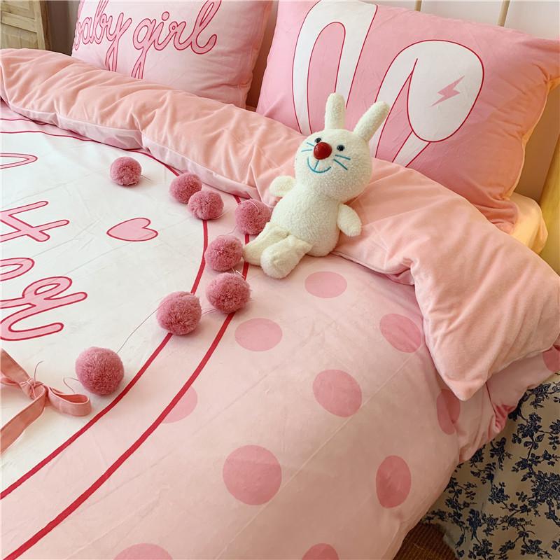 昔可 2019新款设计师款韩国宝宝绒大版四件套 粉波点