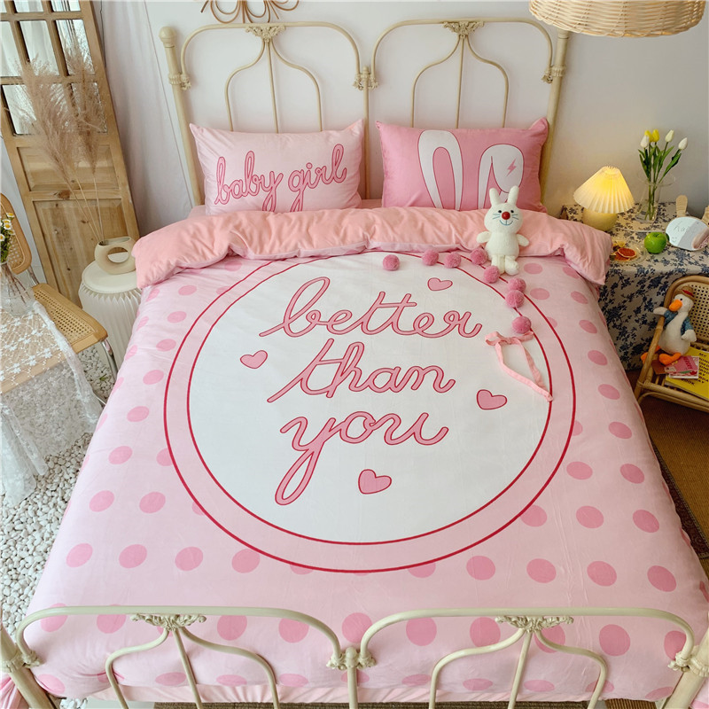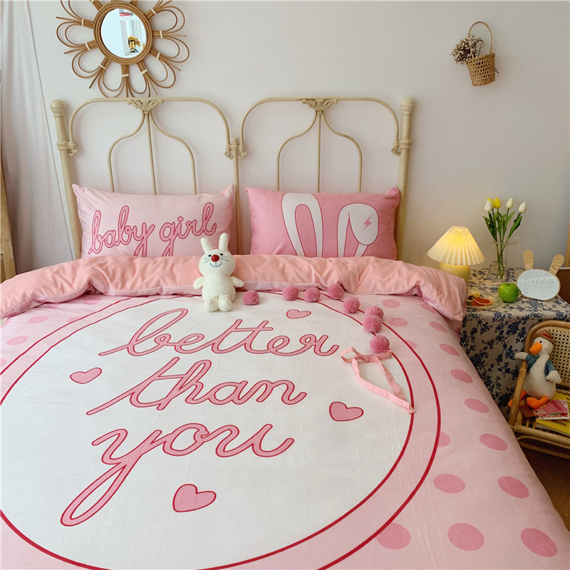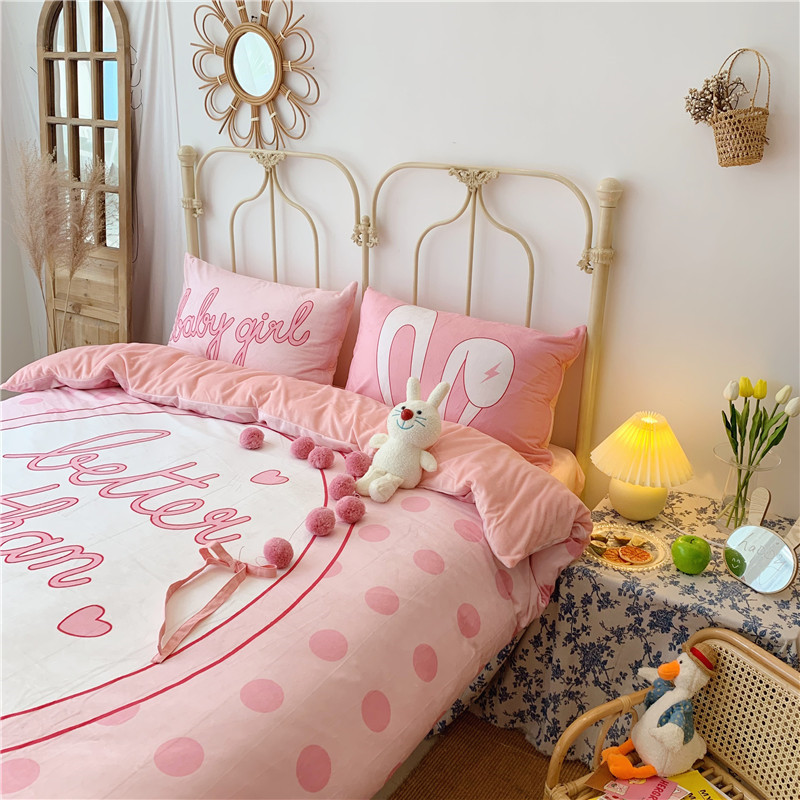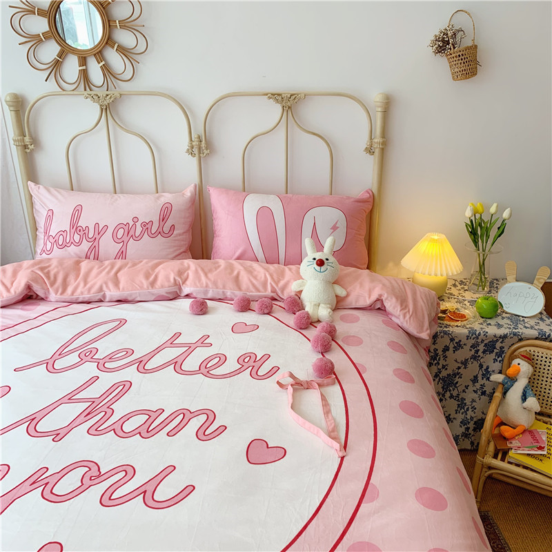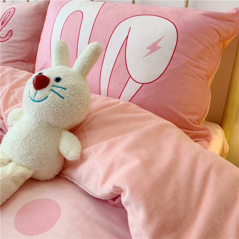 昔可 2019新款设计师款韩国宝宝绒大版四件套 粉波点