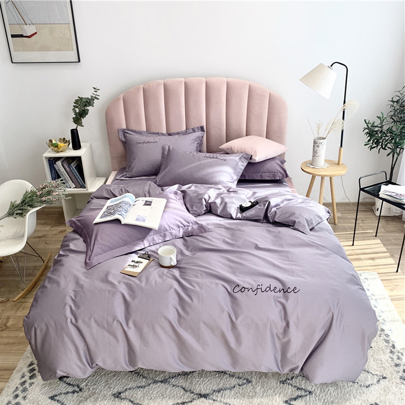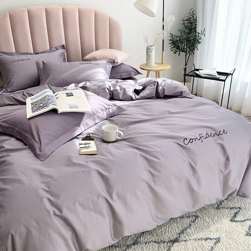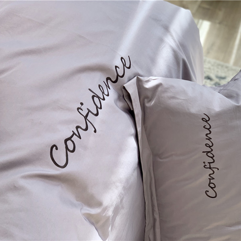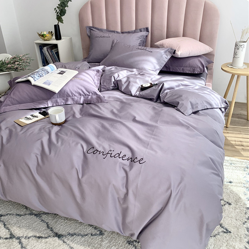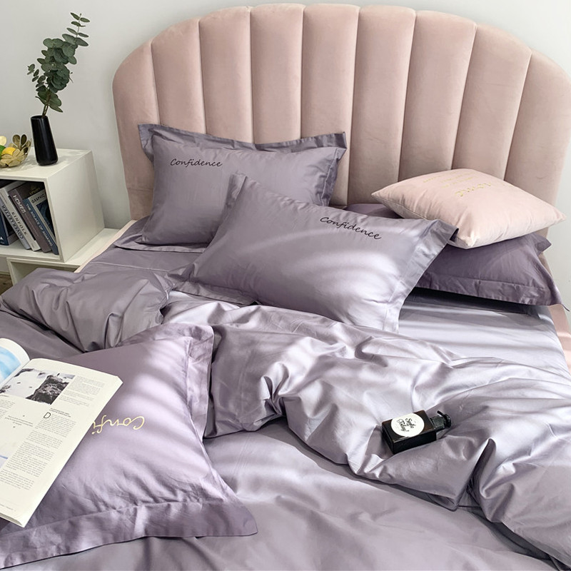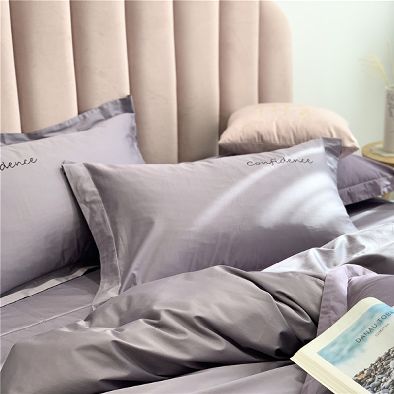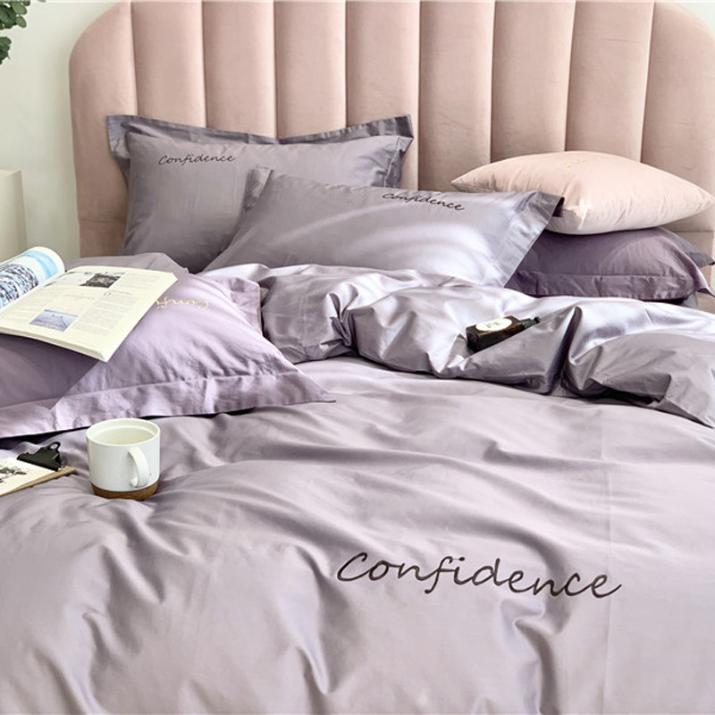 柚子家纺 2020新款100支贡缎澳棉绣花四件套拾色-蓝灰