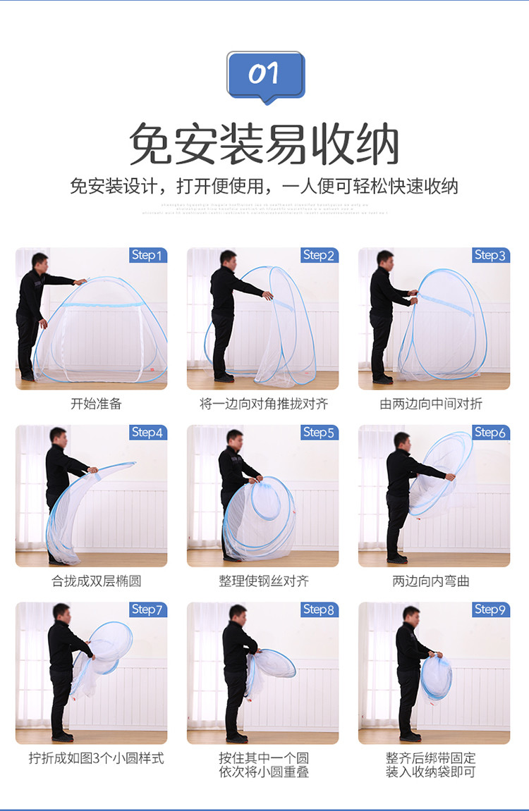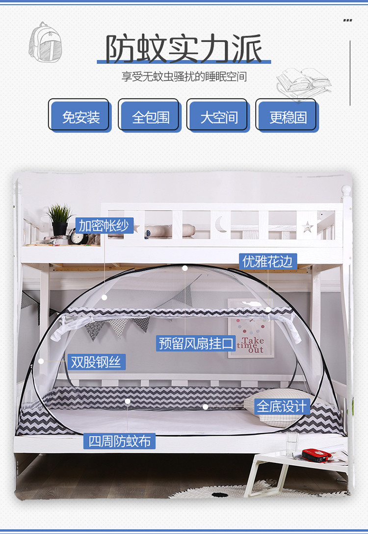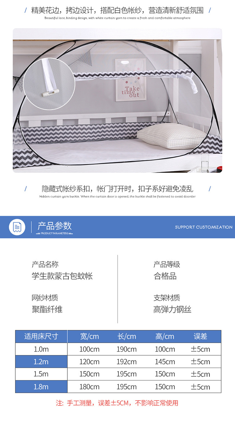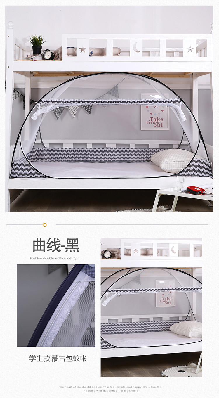 商品名称:鸿和蚊帐 2023新款学生蚊帐蒙古包 曲线 -黑色