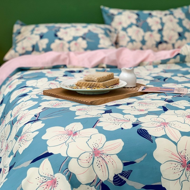 (总)时年家纺 2025新款全棉有氧双层纱系列套件 充值会员优惠5元/套,春日,清辞