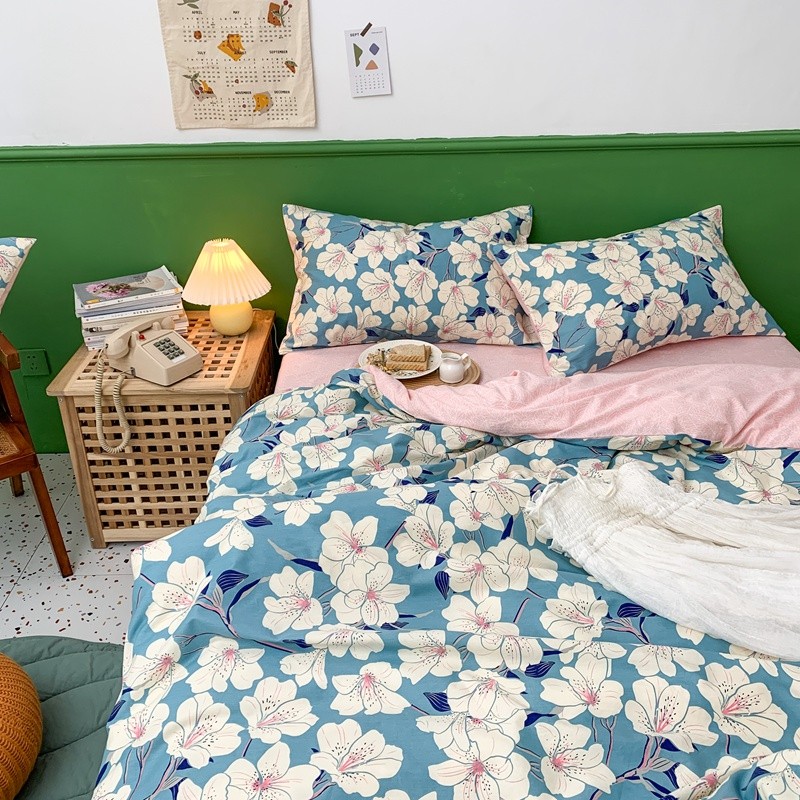 (总)时年 2022新款全棉水洗棉四件套嵌绳款,爱丽丝蓝(浅蓝),克莱因蓝(深蓝)