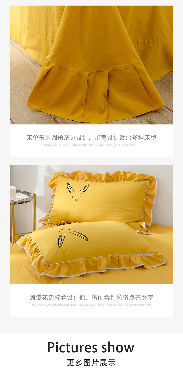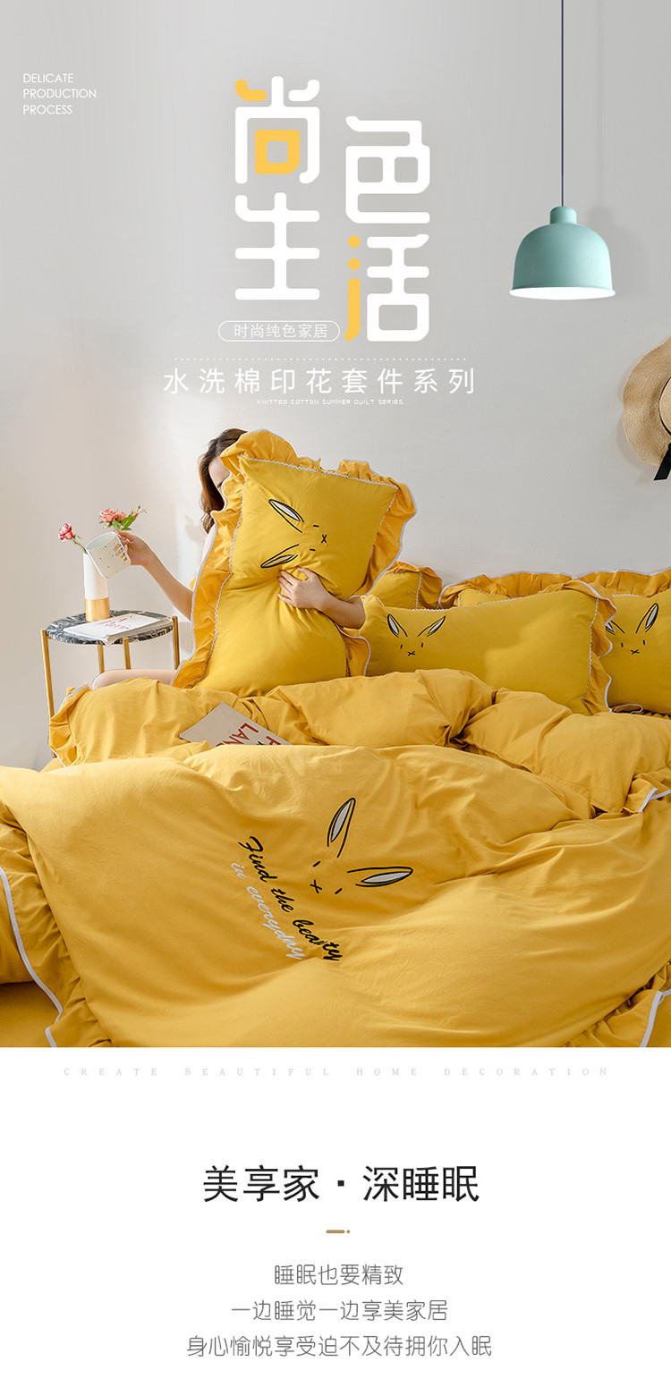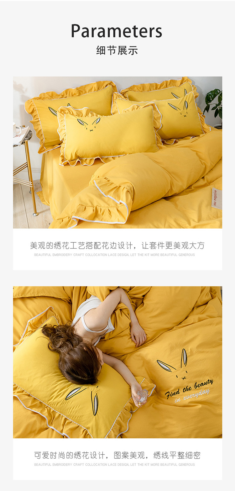 商品名称:ab家纺 2020新款兔耳朵绣花水洗棉四件套 杏黄