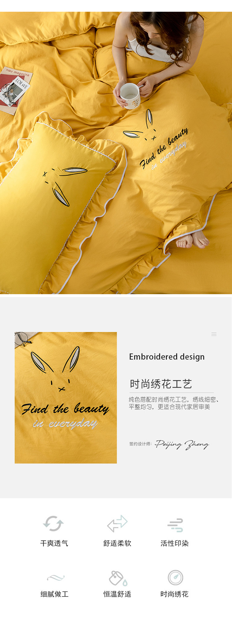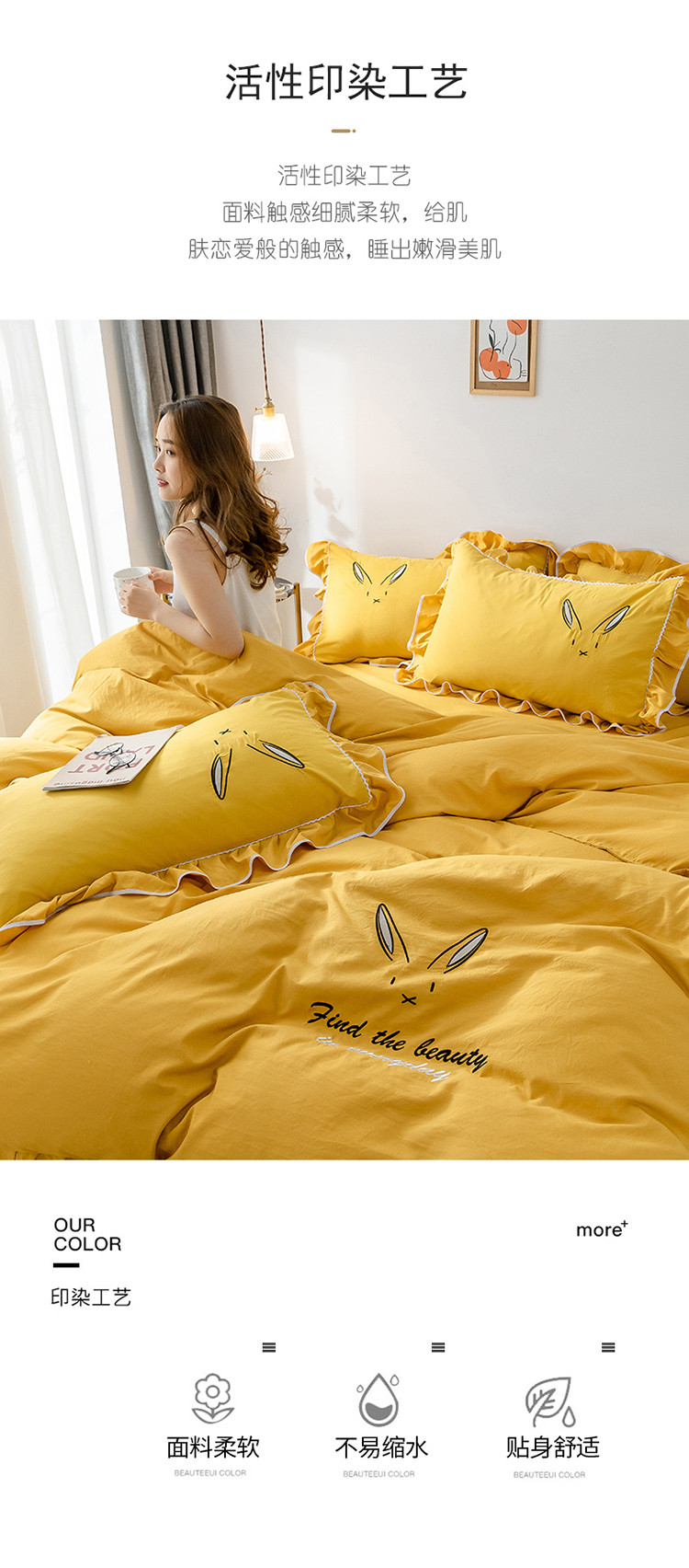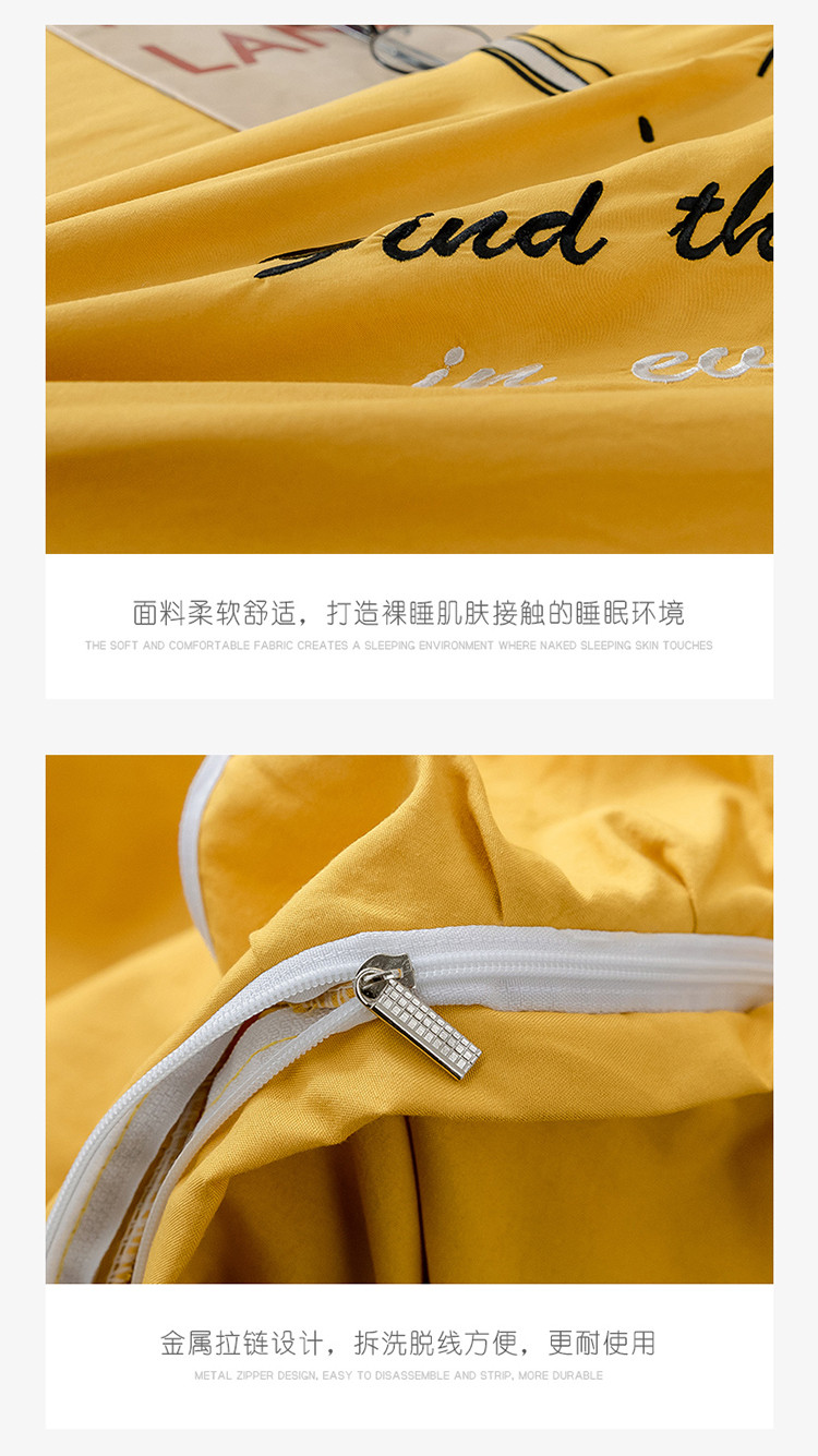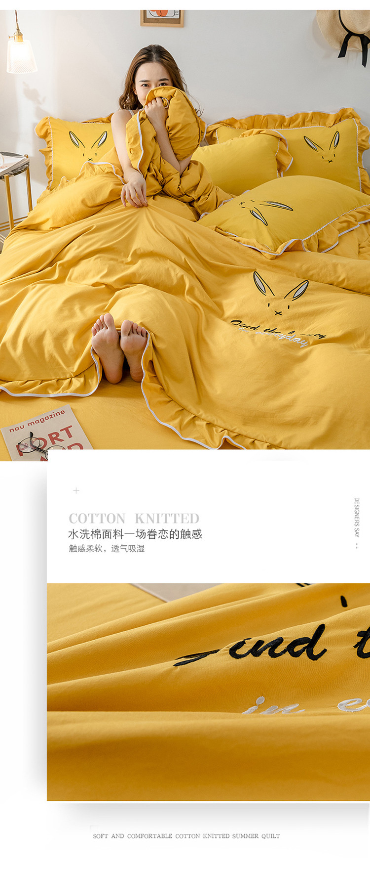 商品名称:ab家纺 2020新款兔耳朵绣花水洗棉四件套 杏黄