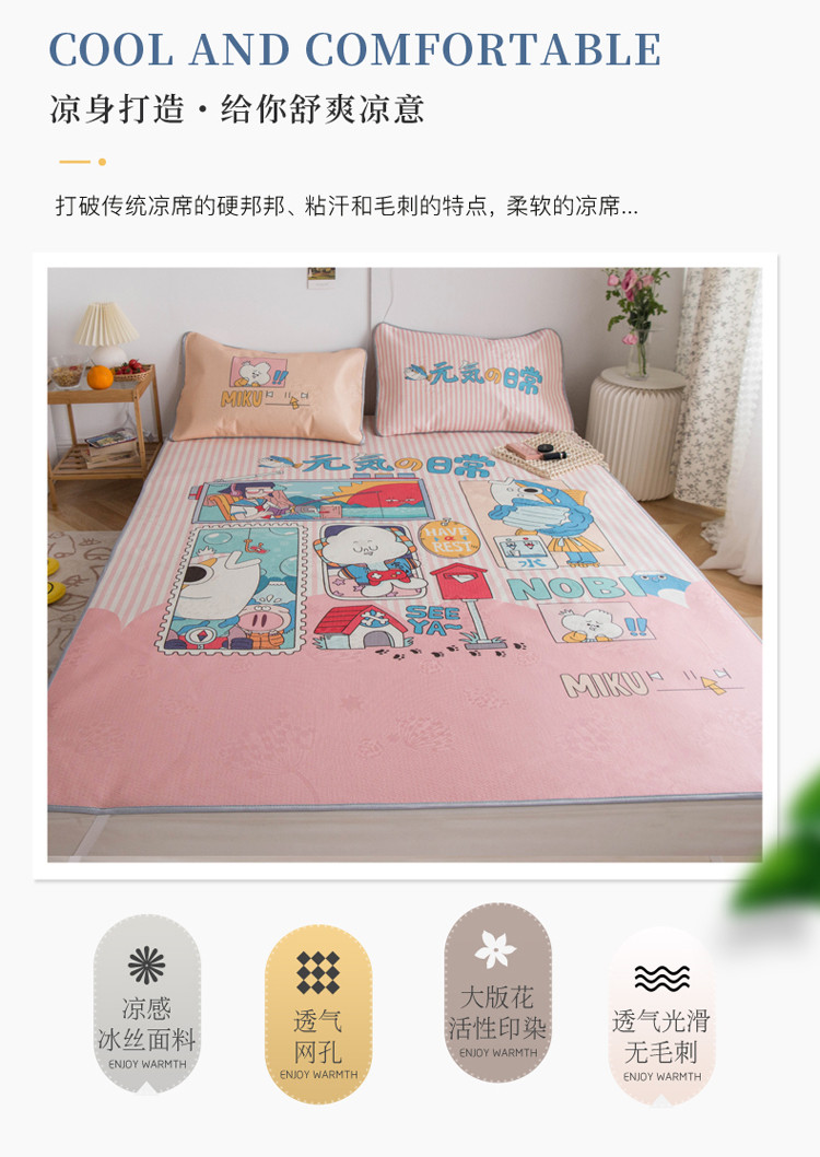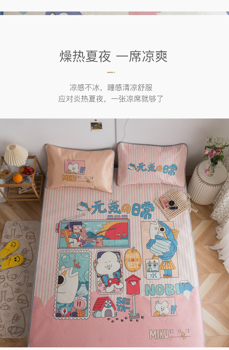 同田家纺2023款数码大版印花卡通二次元冰丝三明治凉席 元气日常