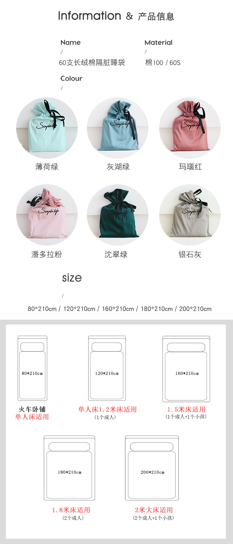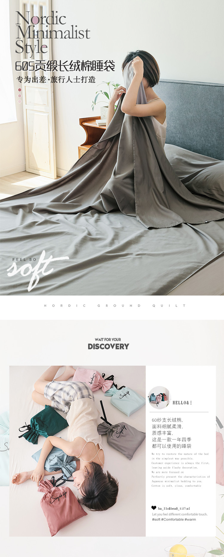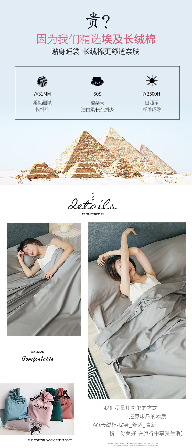 商品名称:西西家居 2023新款60长绒棉纯棉酒店旅游隔脏睡袋 银石灰