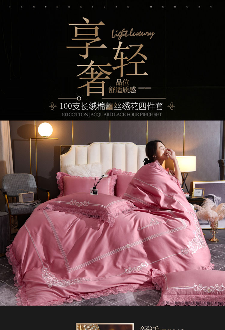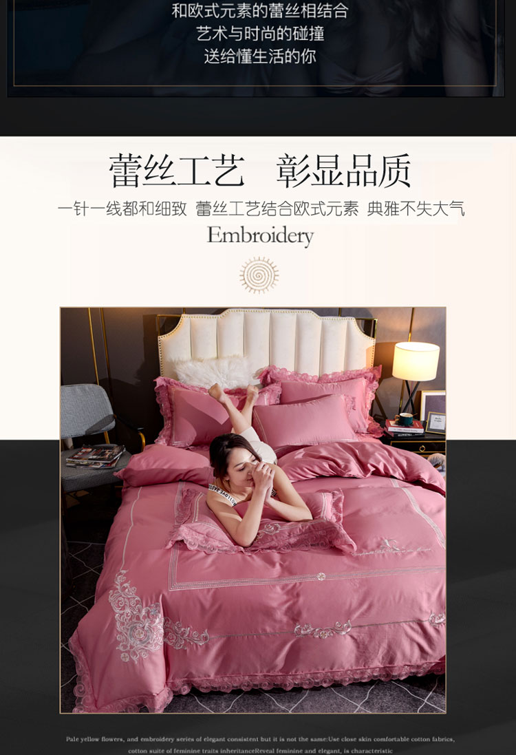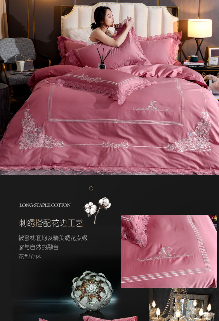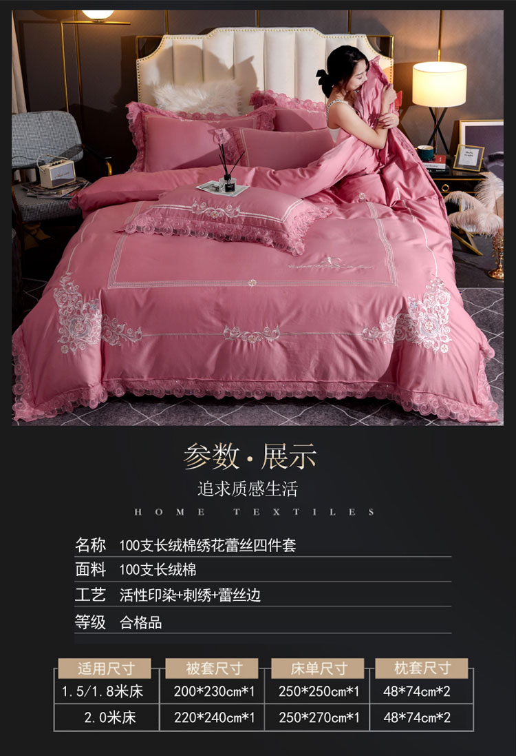 (总)唐人居 2026新款水洗棉花边床盖四件套-花影系列,花影-浅紫,花影-豆沙,花影-玫红,花影-暖橘,花影-苹果绿,花影-浅粉,花影-浅灰
