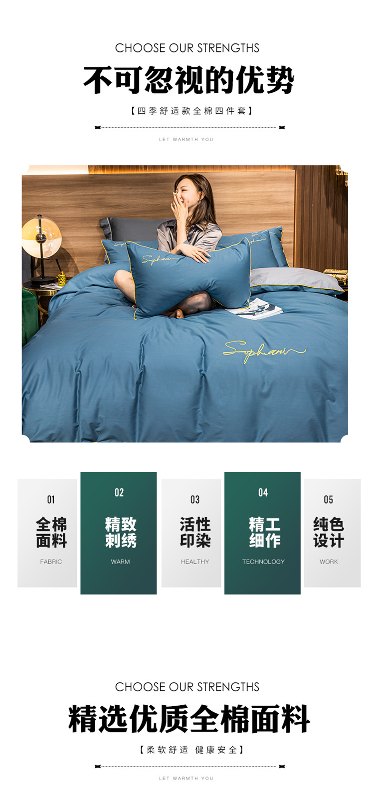 (总)拼社家纺 2025新款母婴及全棉水洗棉刺绣四件套纯棉床上用品,艾玛绿+卡其,繁星蓝+卡其,繁星蓝+玫瑰粉,红豆沙+雅灰,迷雾灰+玫瑰粉,蜜粉+雅灰,奶油白+卡其,奶油白+香橙,牛仔蓝+浅蓝,香橙+雅灰