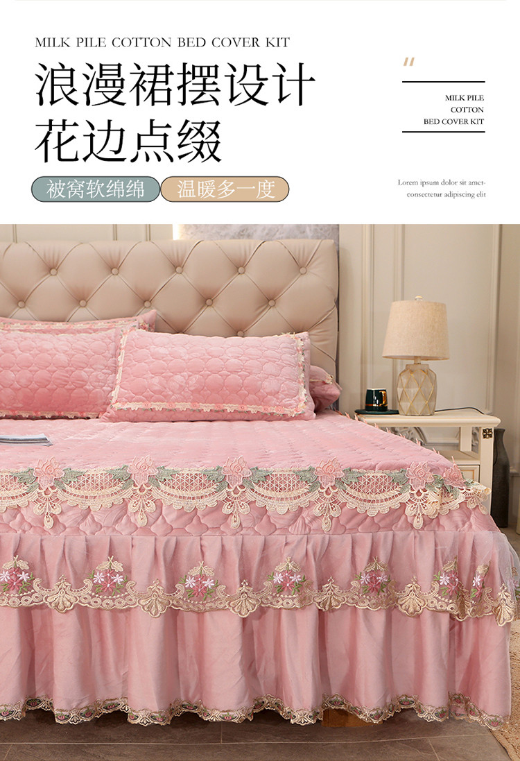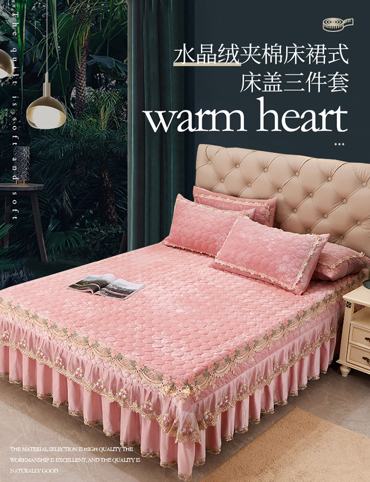 (总)宜凡家纺 2021新款水晶绒床裙式床盖三件套