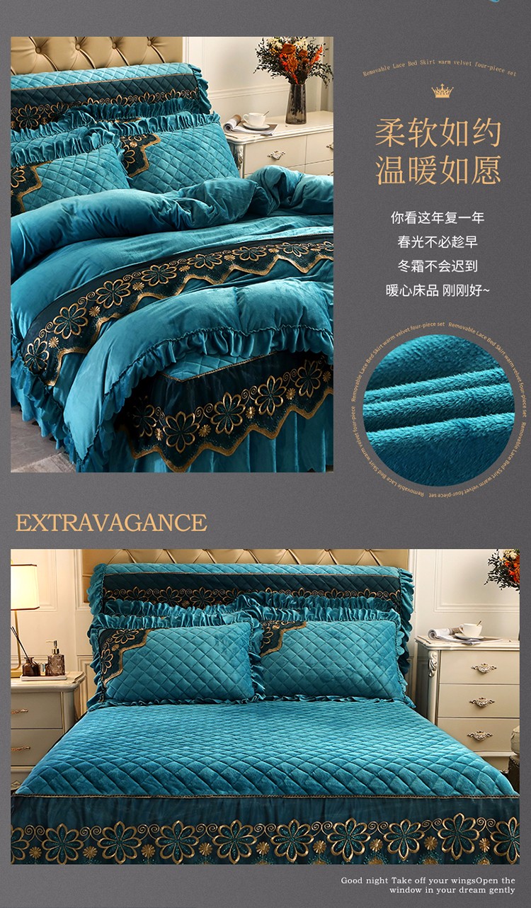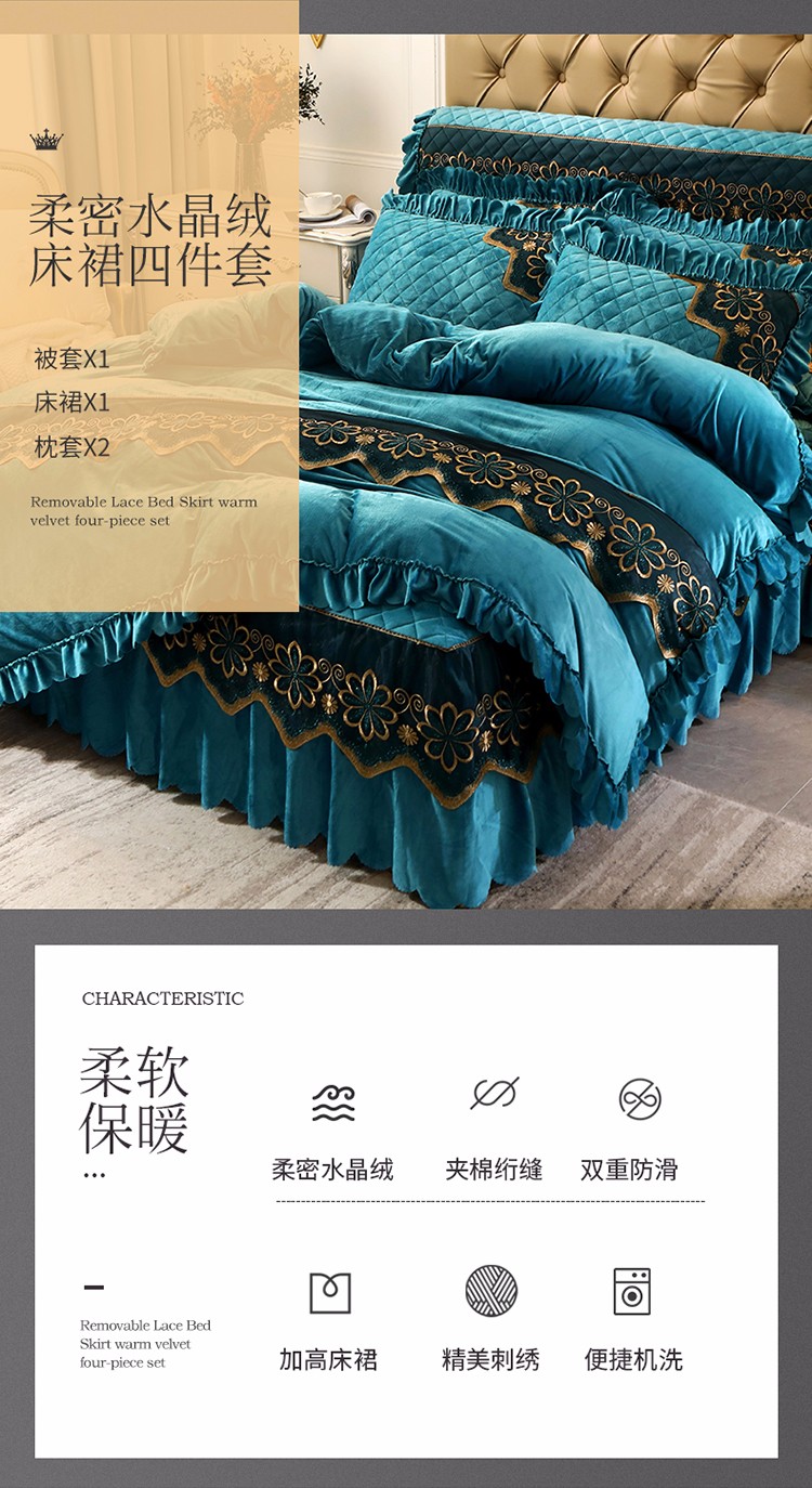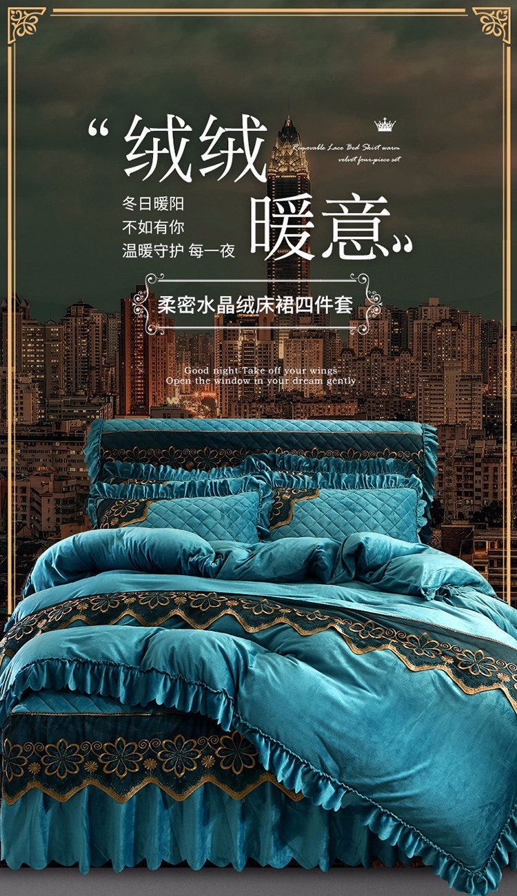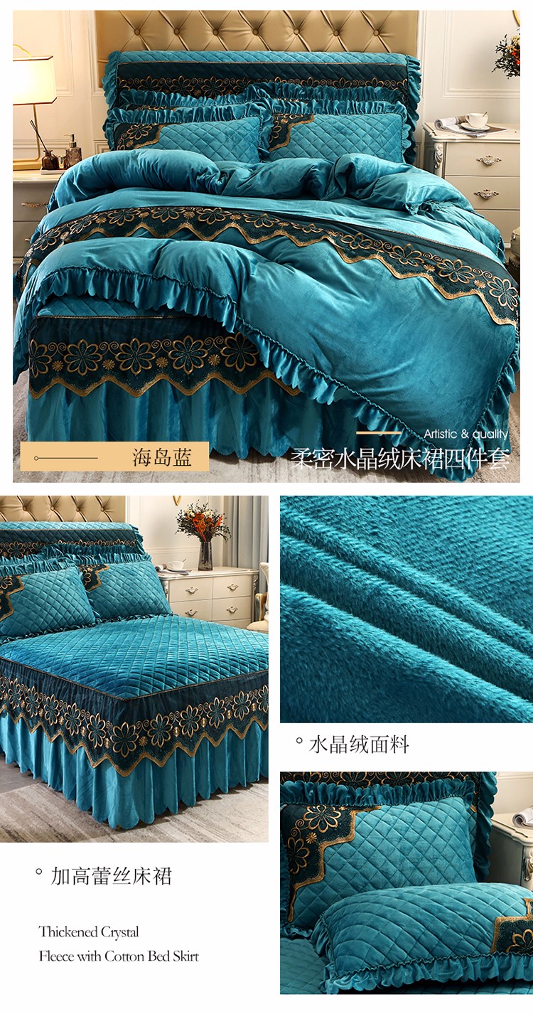 商品名称:情恒 2025新款水晶绒皇家豪庭系列四件套 海岛蓝