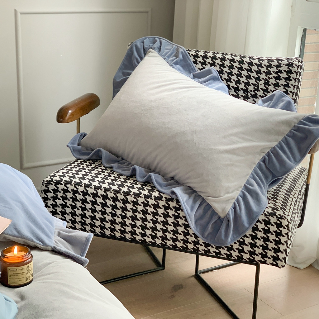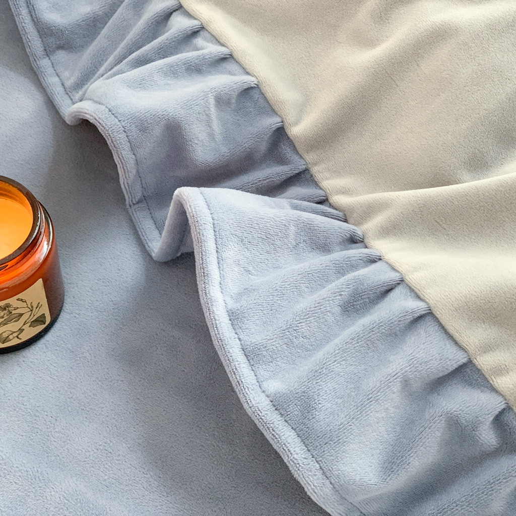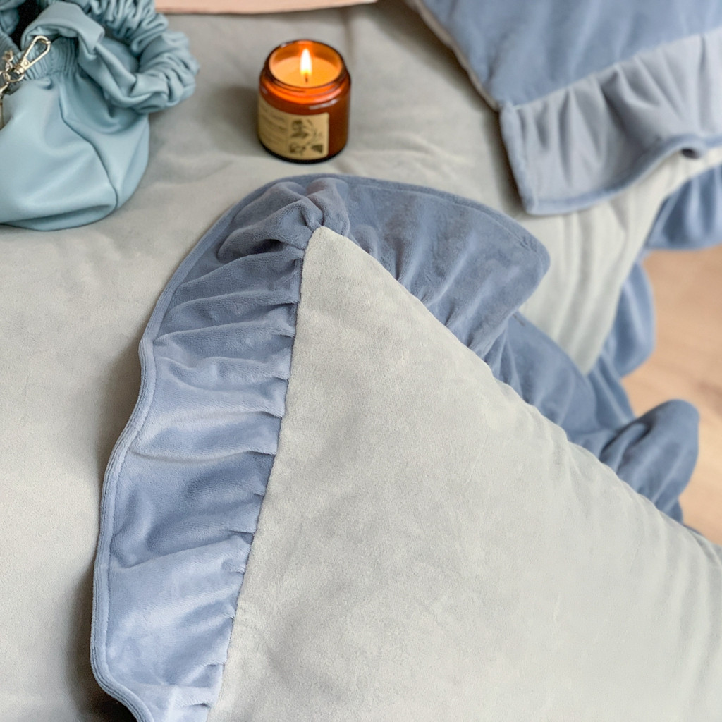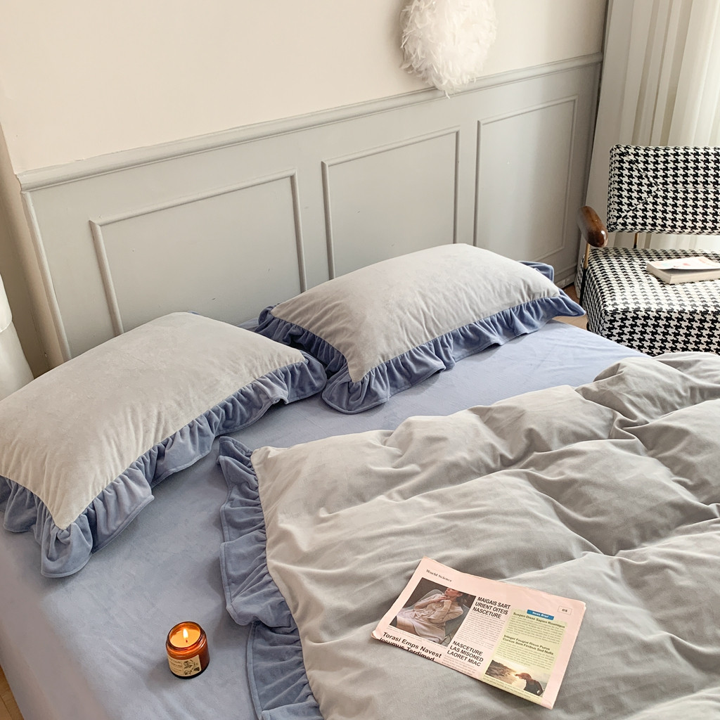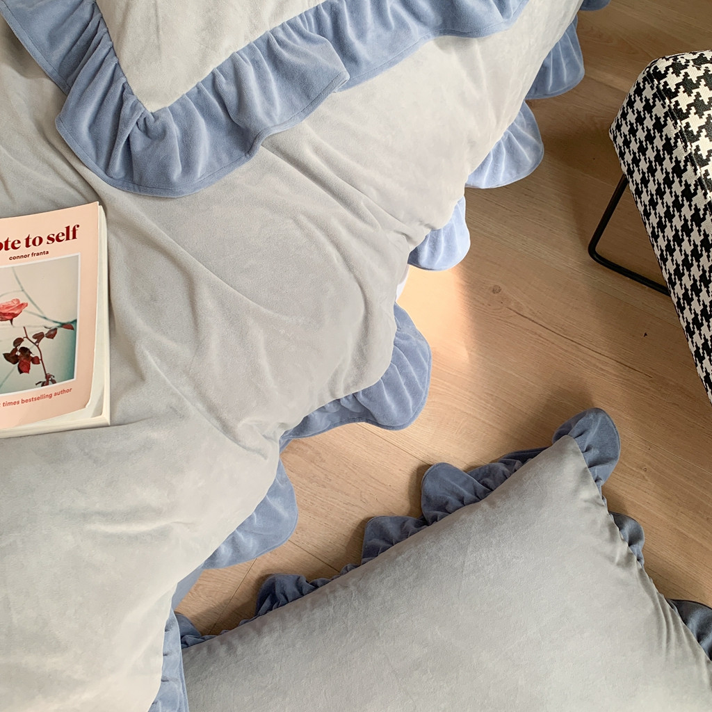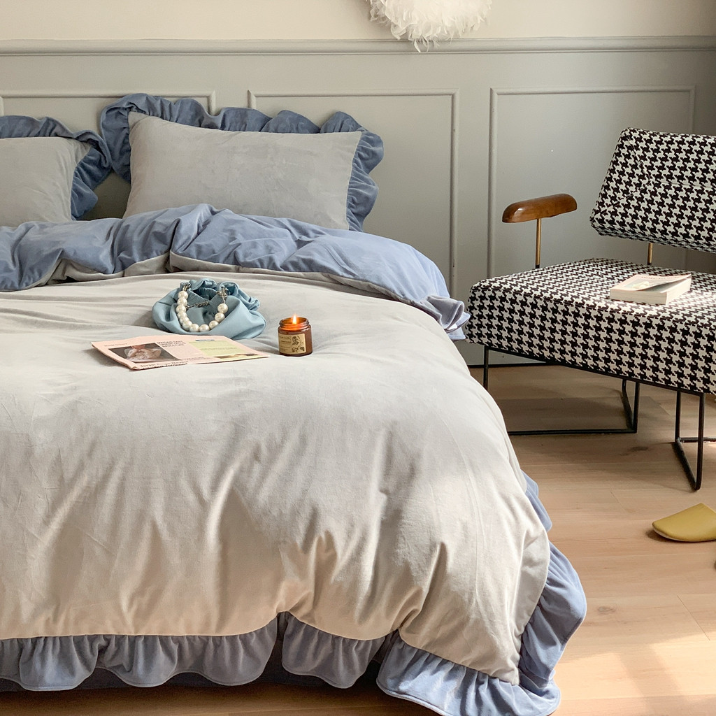 时年 2021新款婴肤绒纯色花边款四件套 丝绒蓝灰