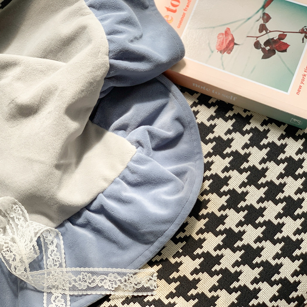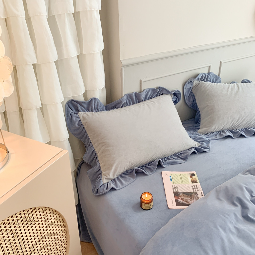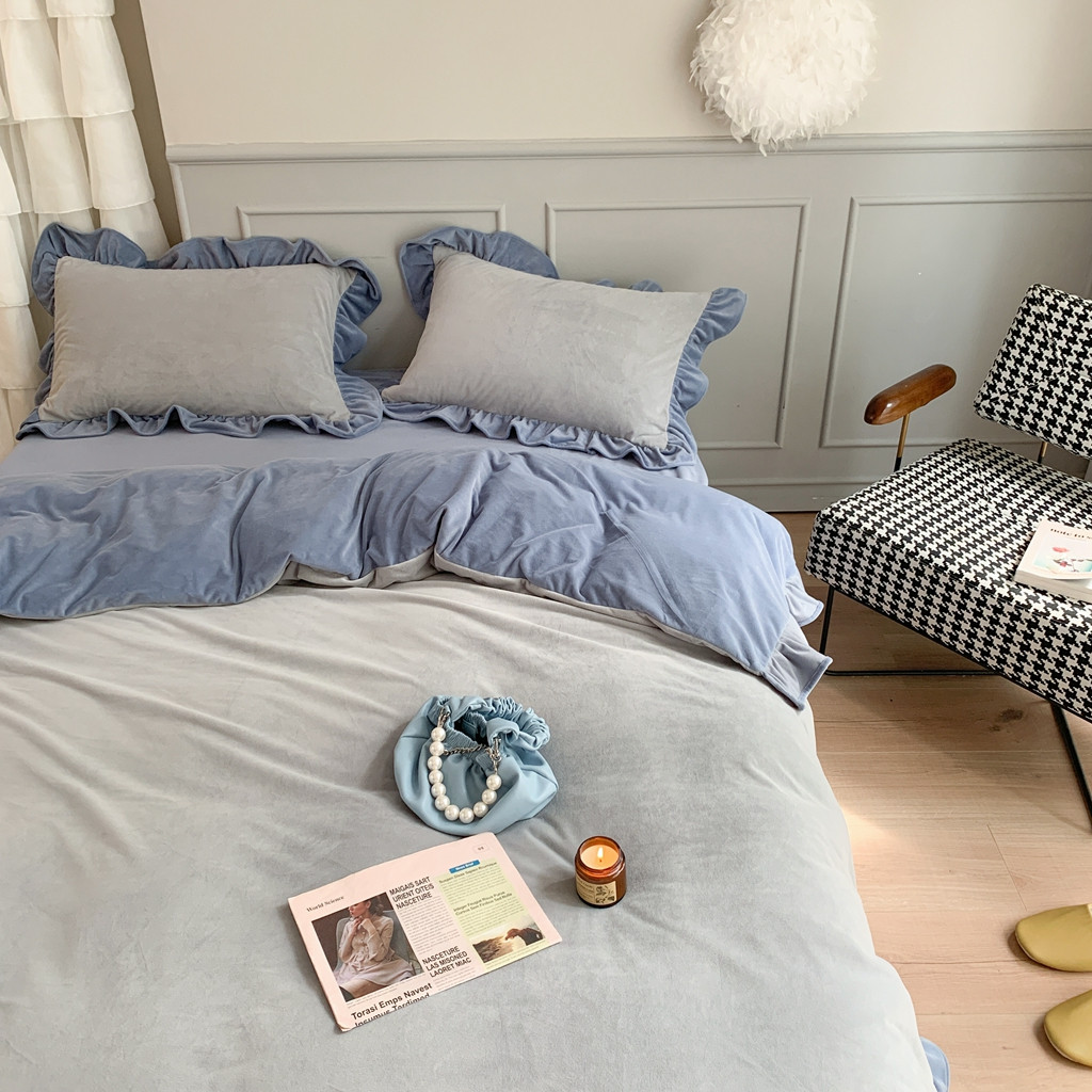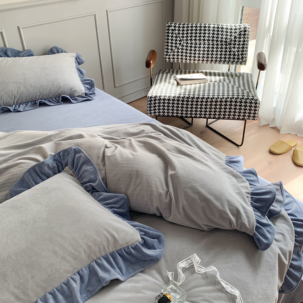 商品名称:时年 2021新款婴肤绒纯色花边款四件套 丝绒蓝灰