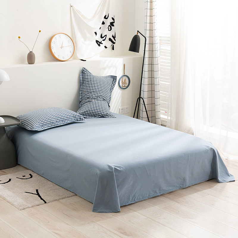 简色坊 2023新款全棉水洗棉单品床单 蓝小格