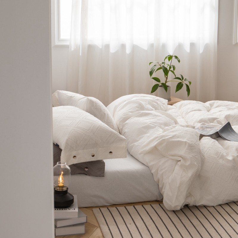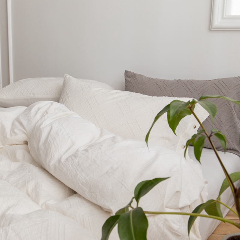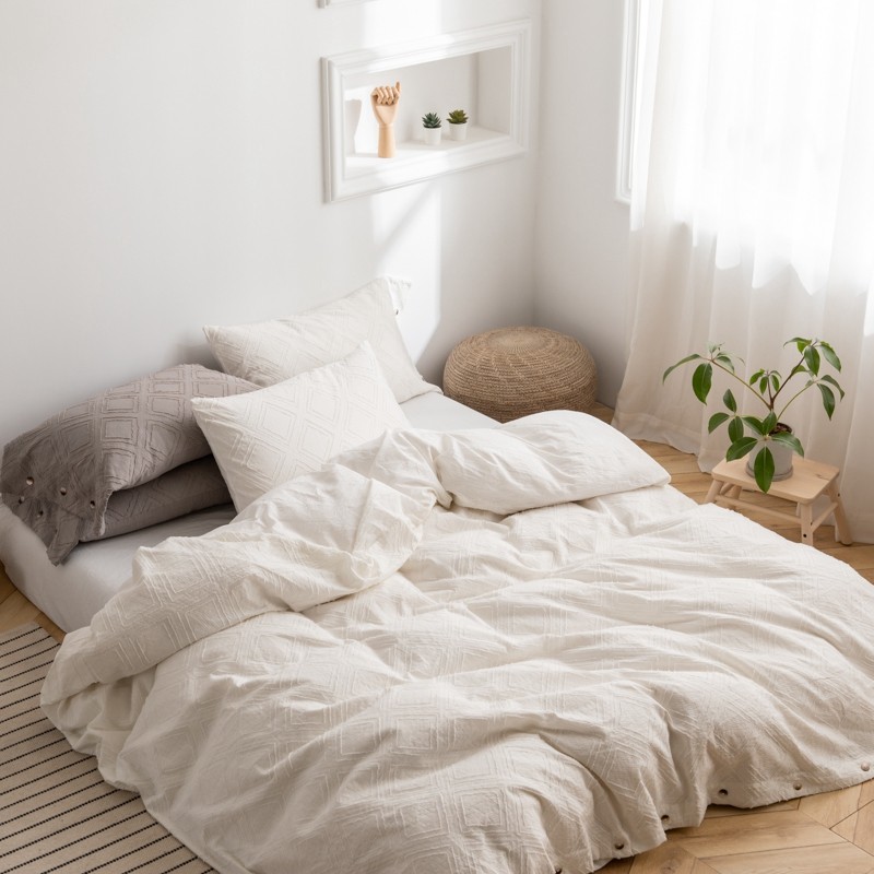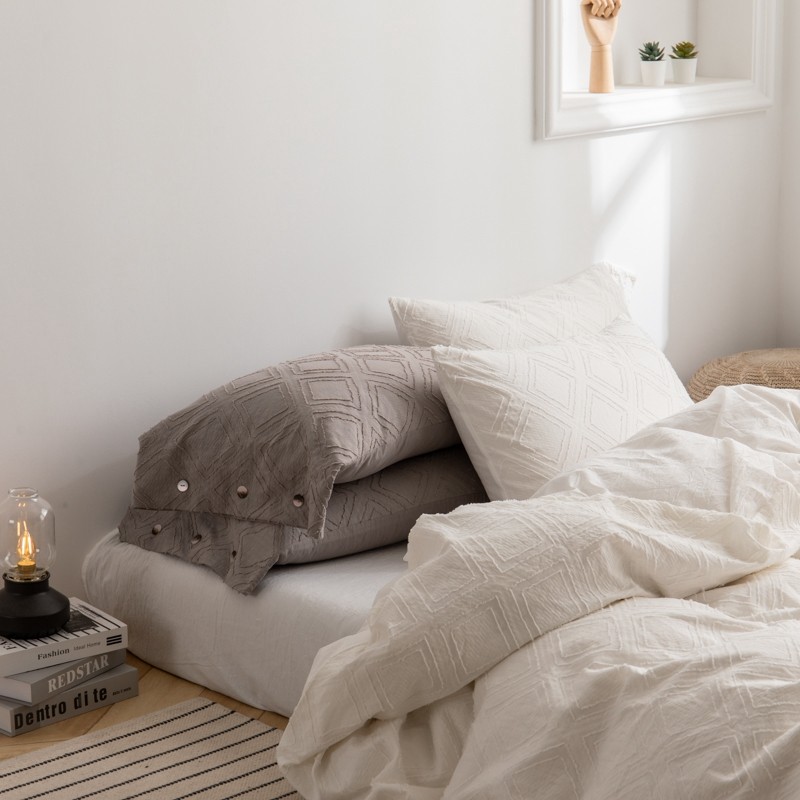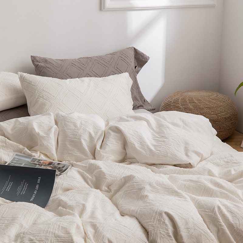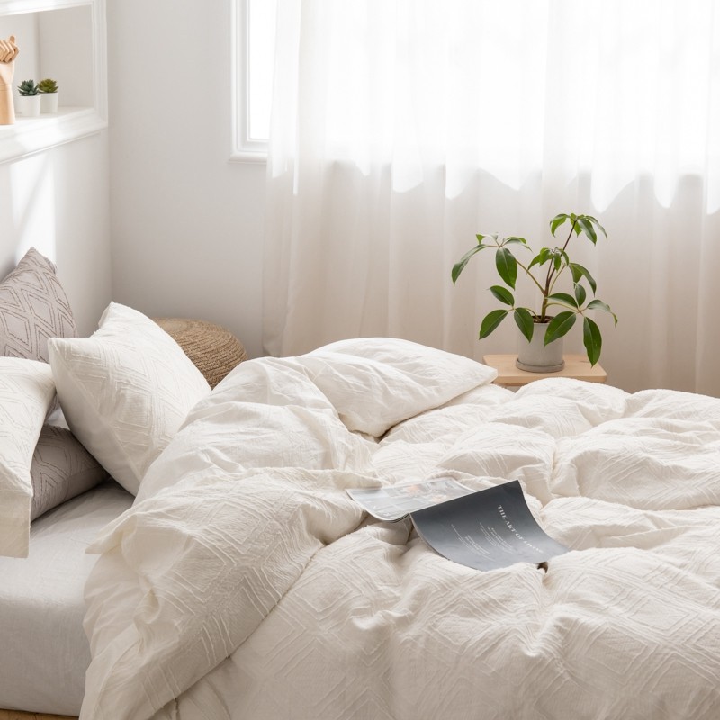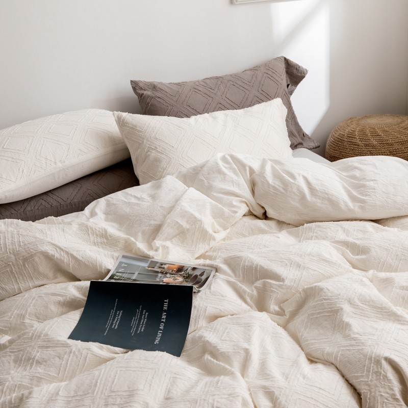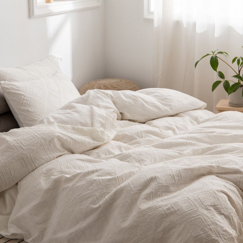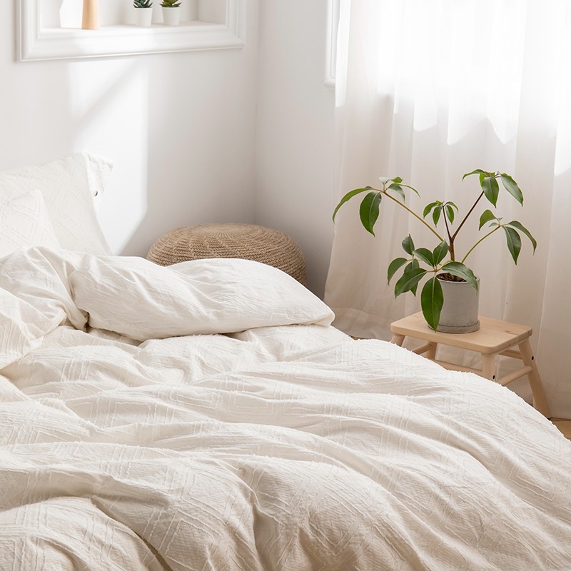 (总)简家居 2025新款亲肤舒适棉麻床盖三件套,棉麻提花