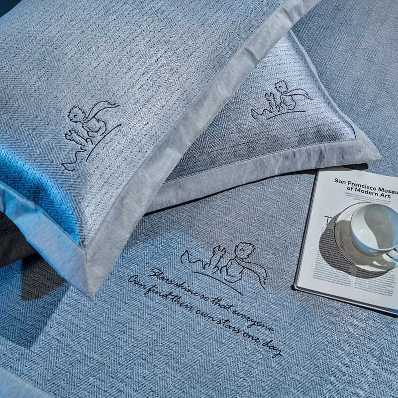 (总)朗莎 2024新款A版双层纱提花绣花B版40s水洗棉四件套,小兔子粉,小兔子蓝