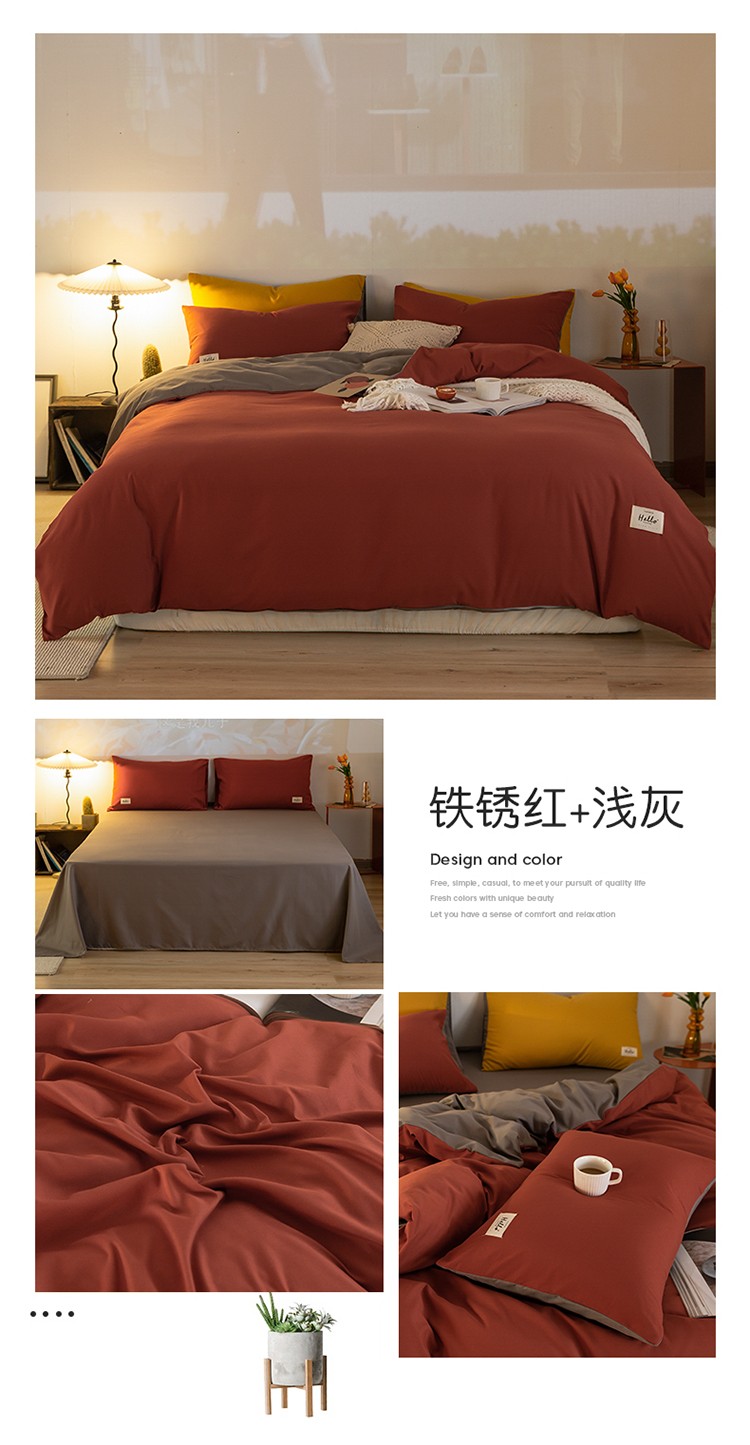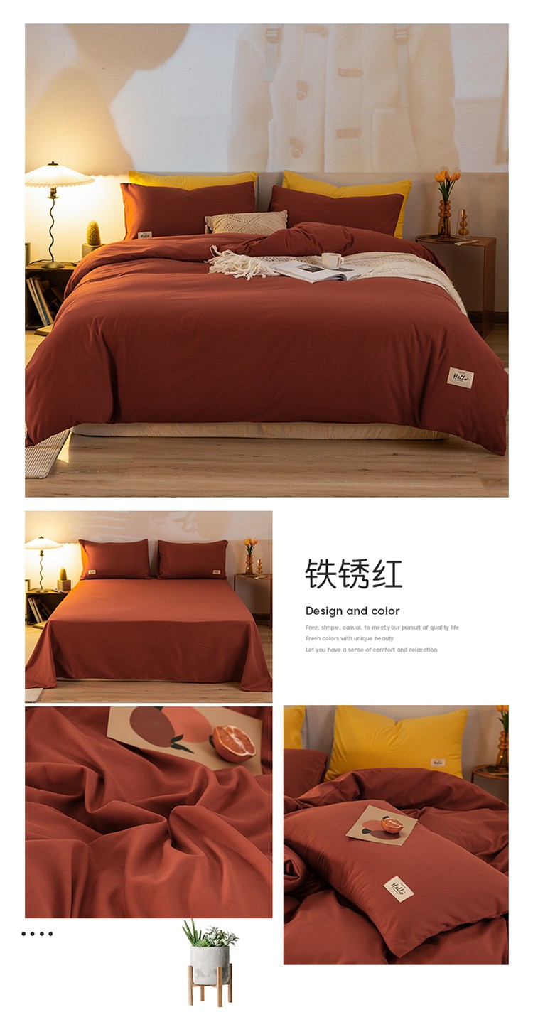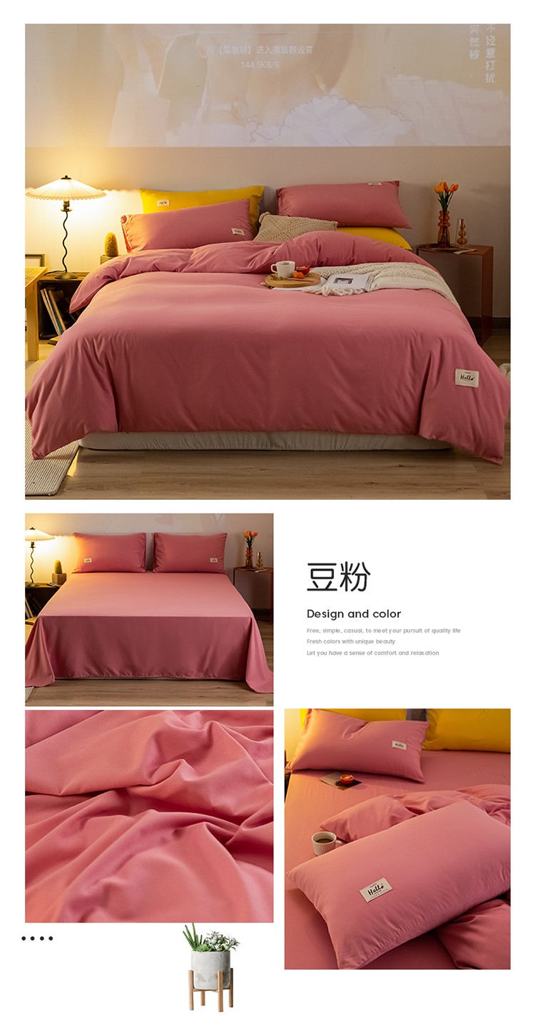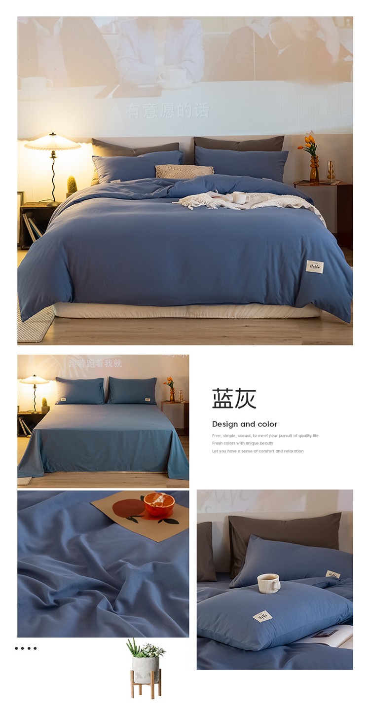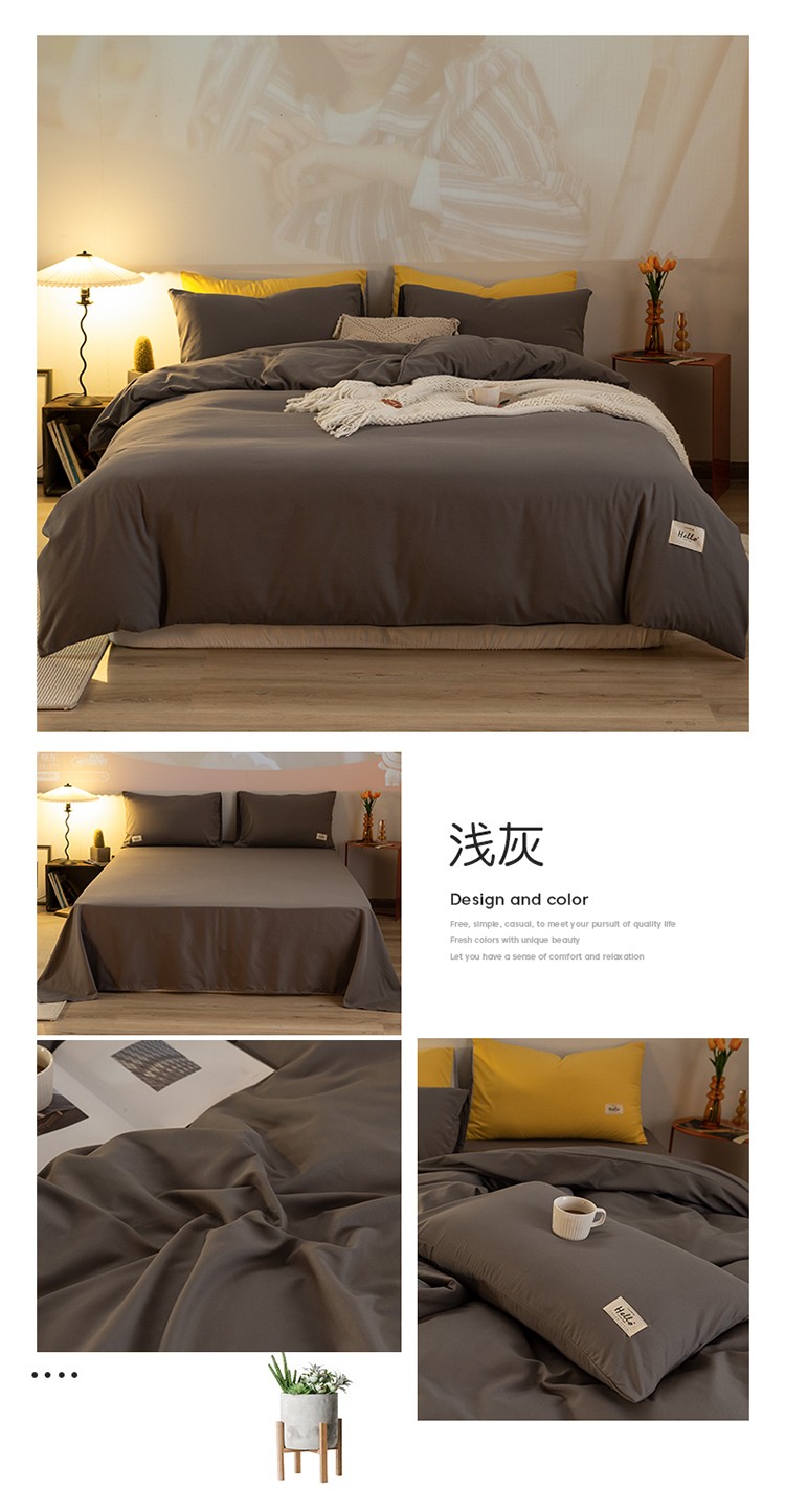 (总)雨帆 2023新款简约纯色水洗棉四件套,暗紫,高级灰,藕粉,浅咖,浅绿,天空蓝