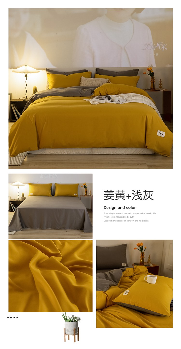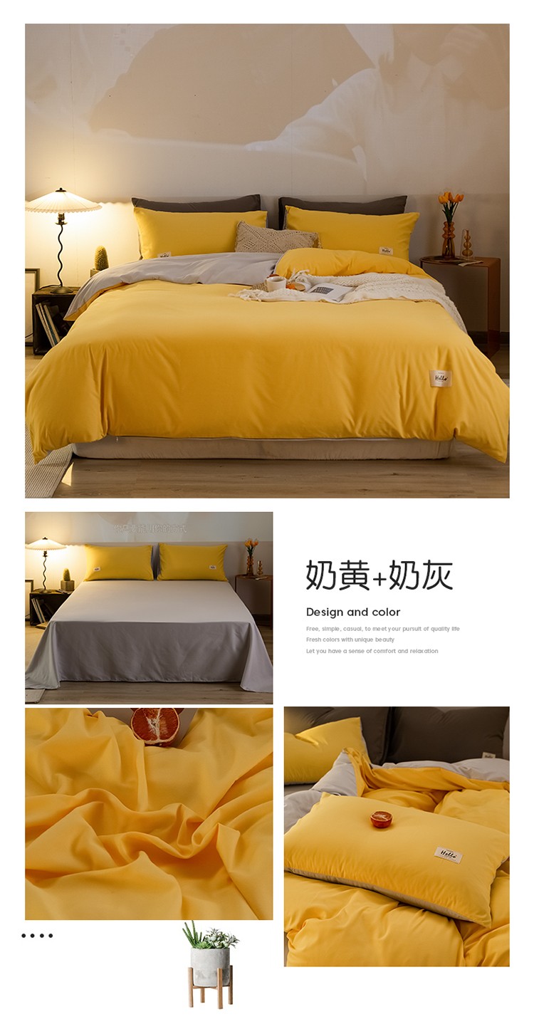 (总)雨帆家纺 2026新款素色双拼水洗棉混搭四件套,粉+浅黄,粉+玉,蓝+咖,米黄+兰,粉+天蓝,兰+深蓝,浅黄+粉,浅黄+黄,玉+咖