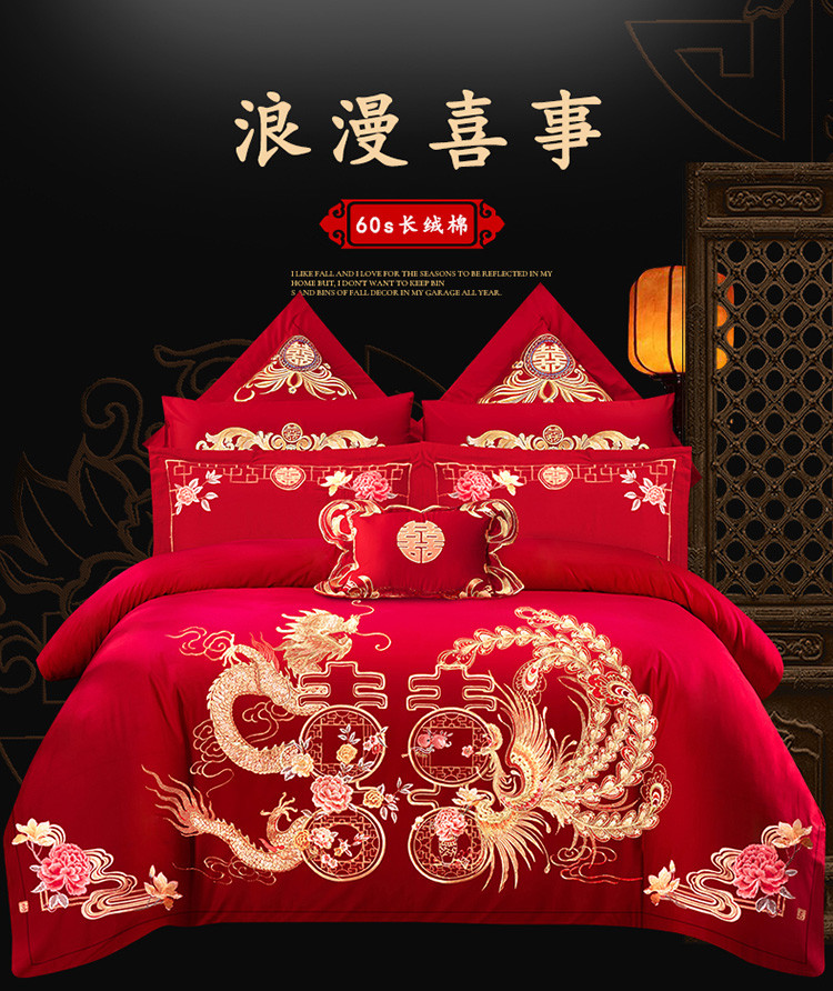 当前位置: 91家纺网 > 商品网购 > 床品套件 > 四件套 > 婚庆四件套 > 慕她家纺2025四件套大红色刺绣结婚全棉纯棉多件套龙凤报喜