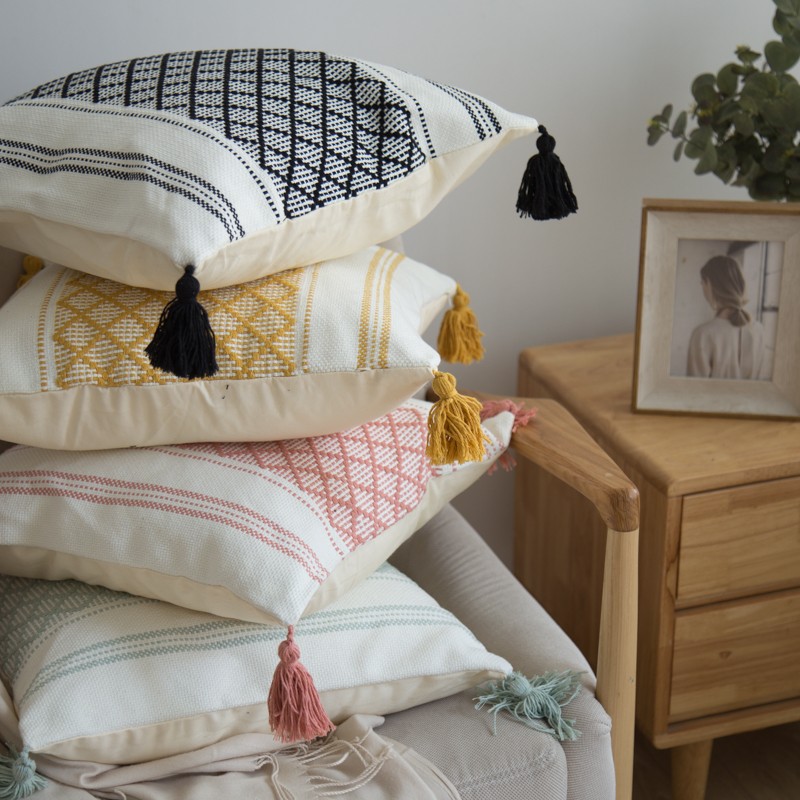 商品名称:恋佳 2021新款小格工艺编织枕系列 小格子皮粉