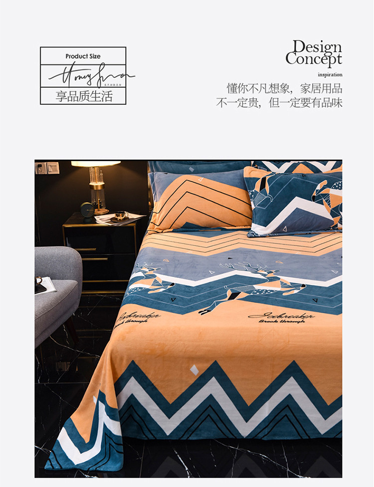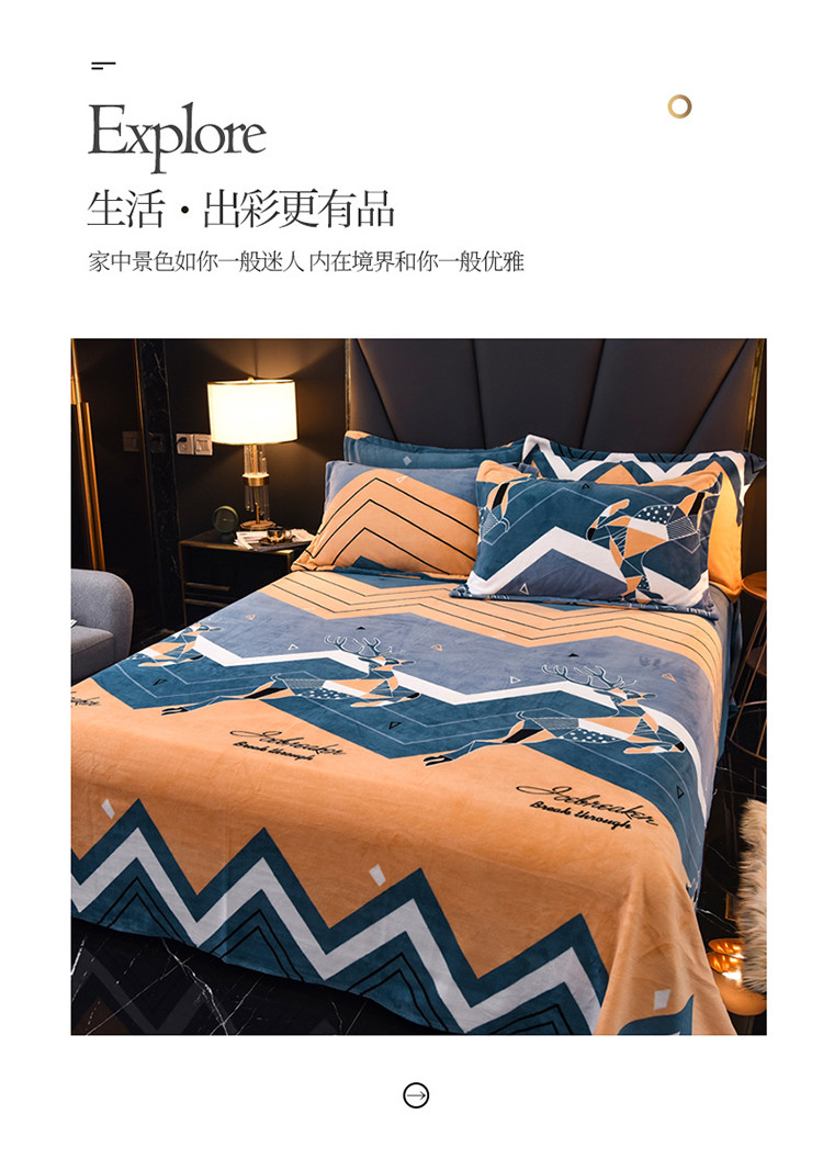 锦罗绣 2021新款牛奶绒印花单品床单 奔腾鹿
