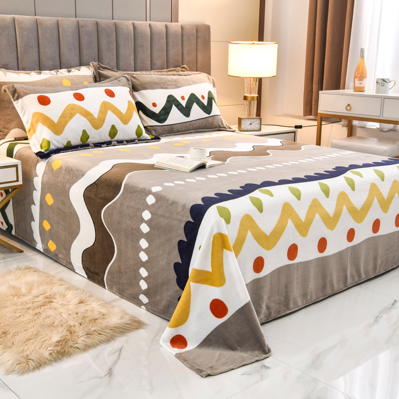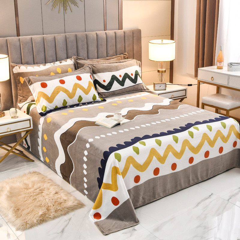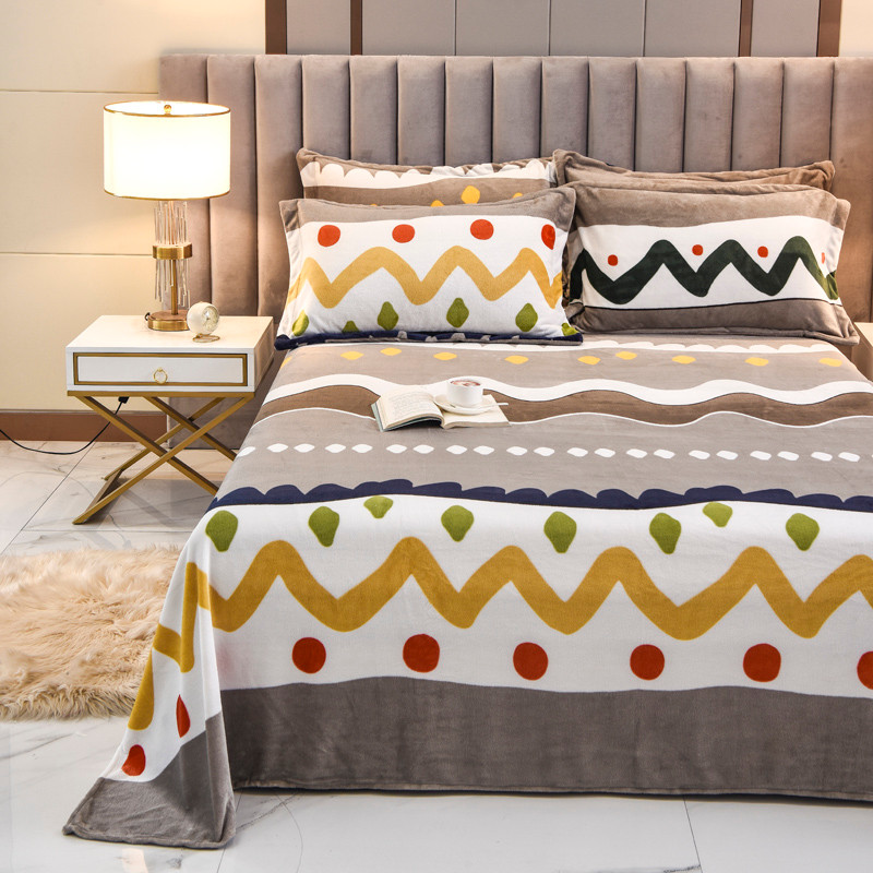 商品名称:锦罗绣 2021新款牛奶绒印花单品床单 时尚条纹