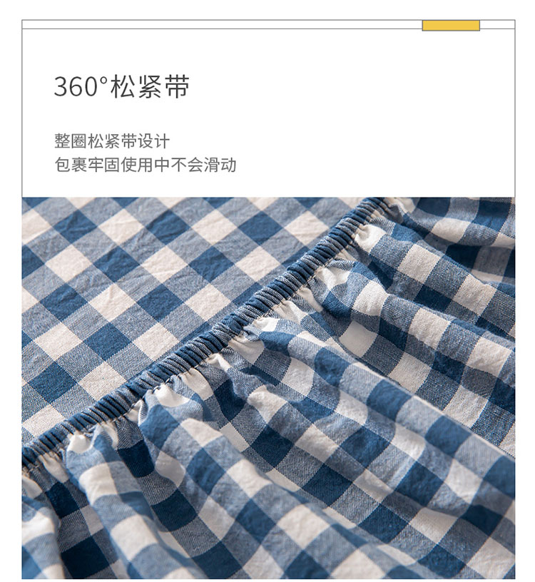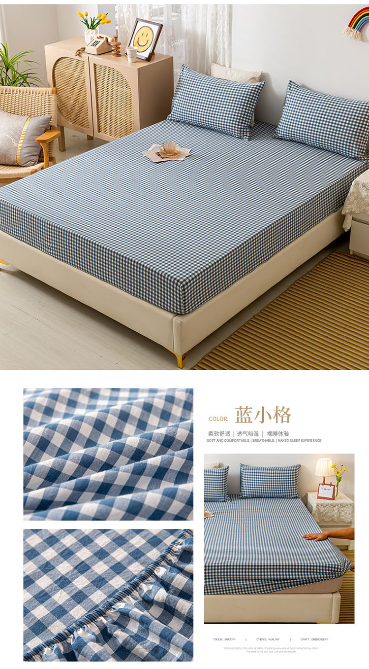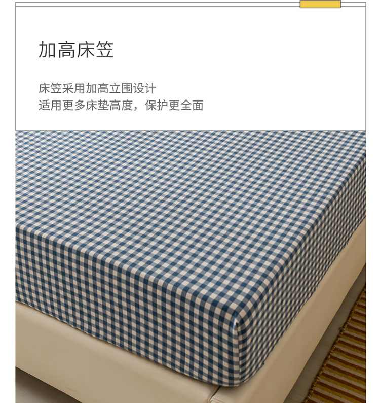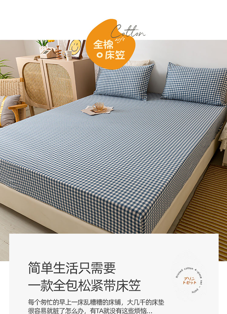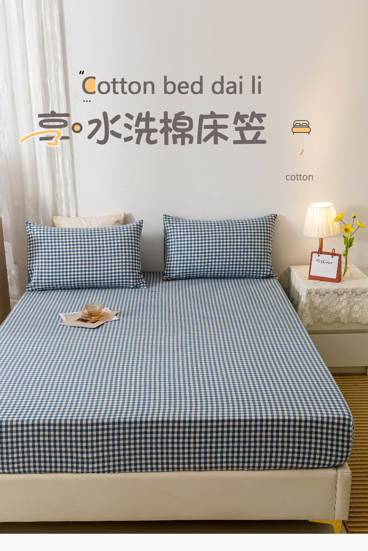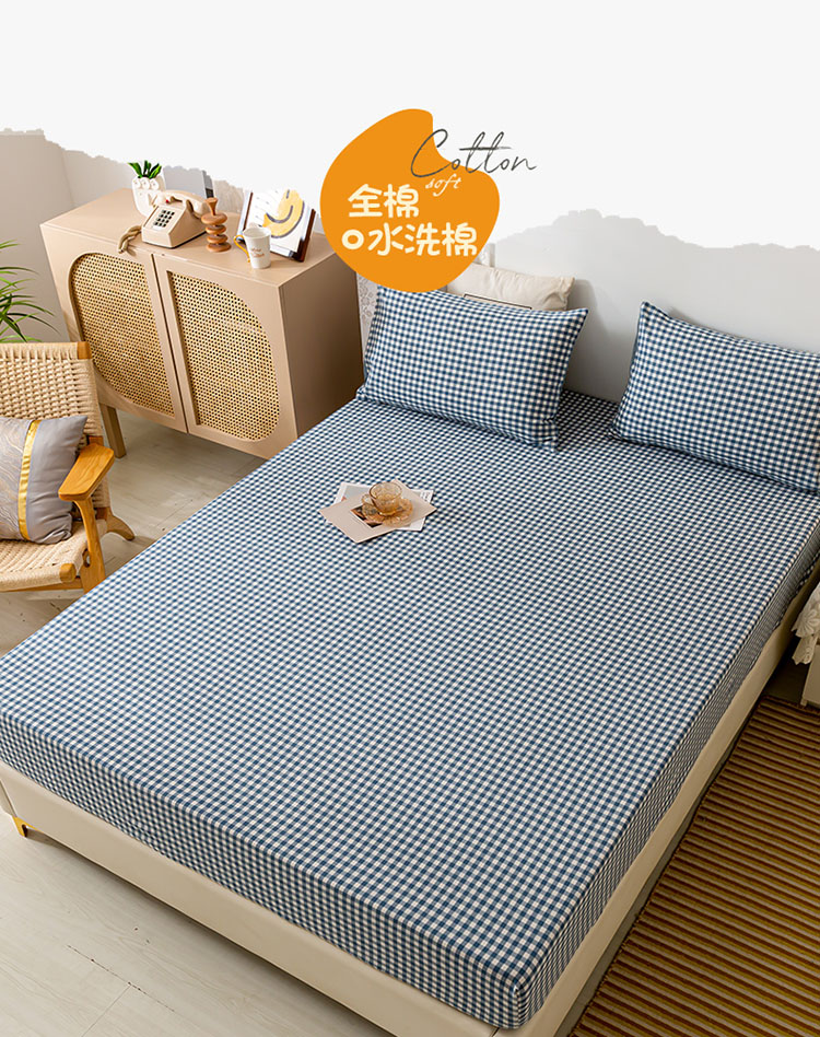 商品名称:ab家纺 2021新款全棉水洗棉单品床笠 蓝小格