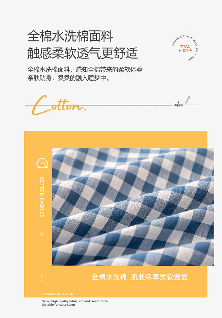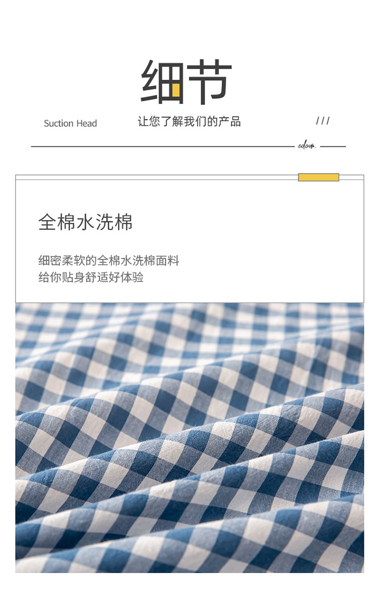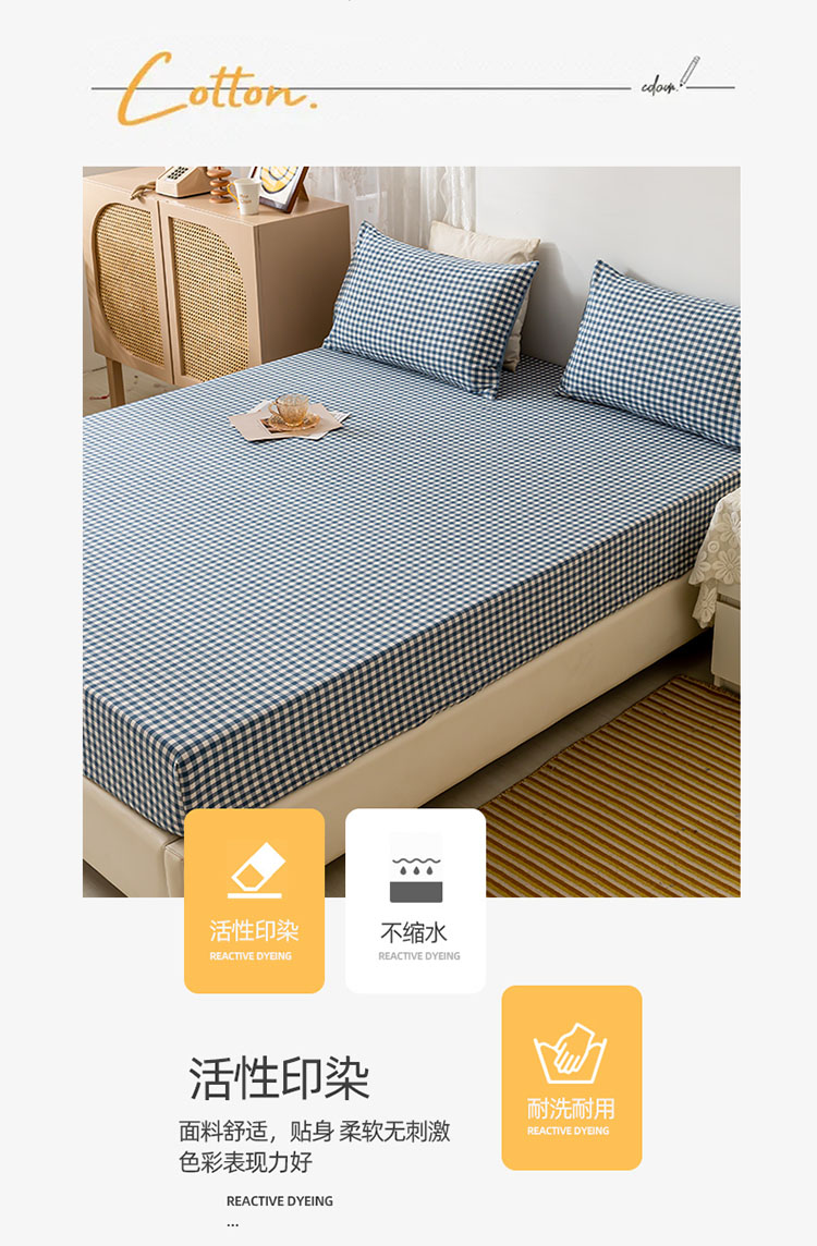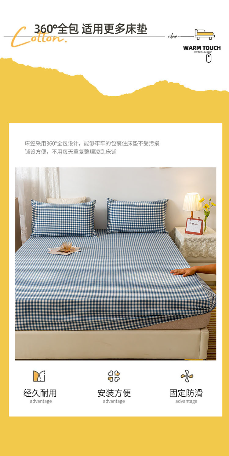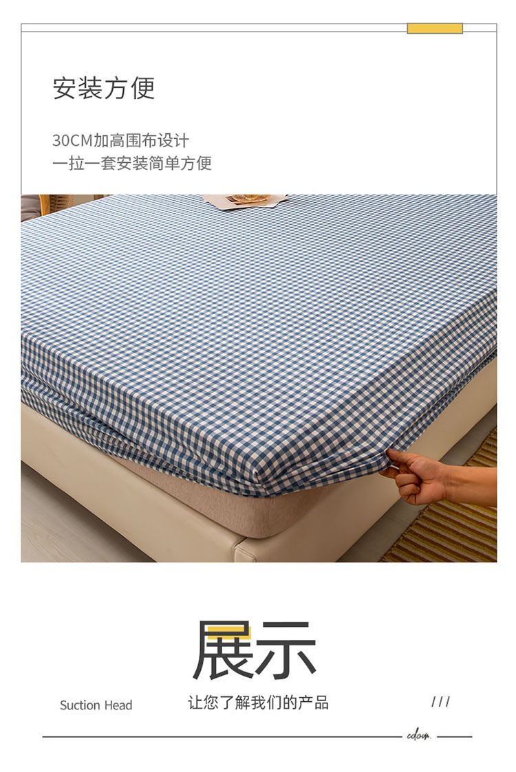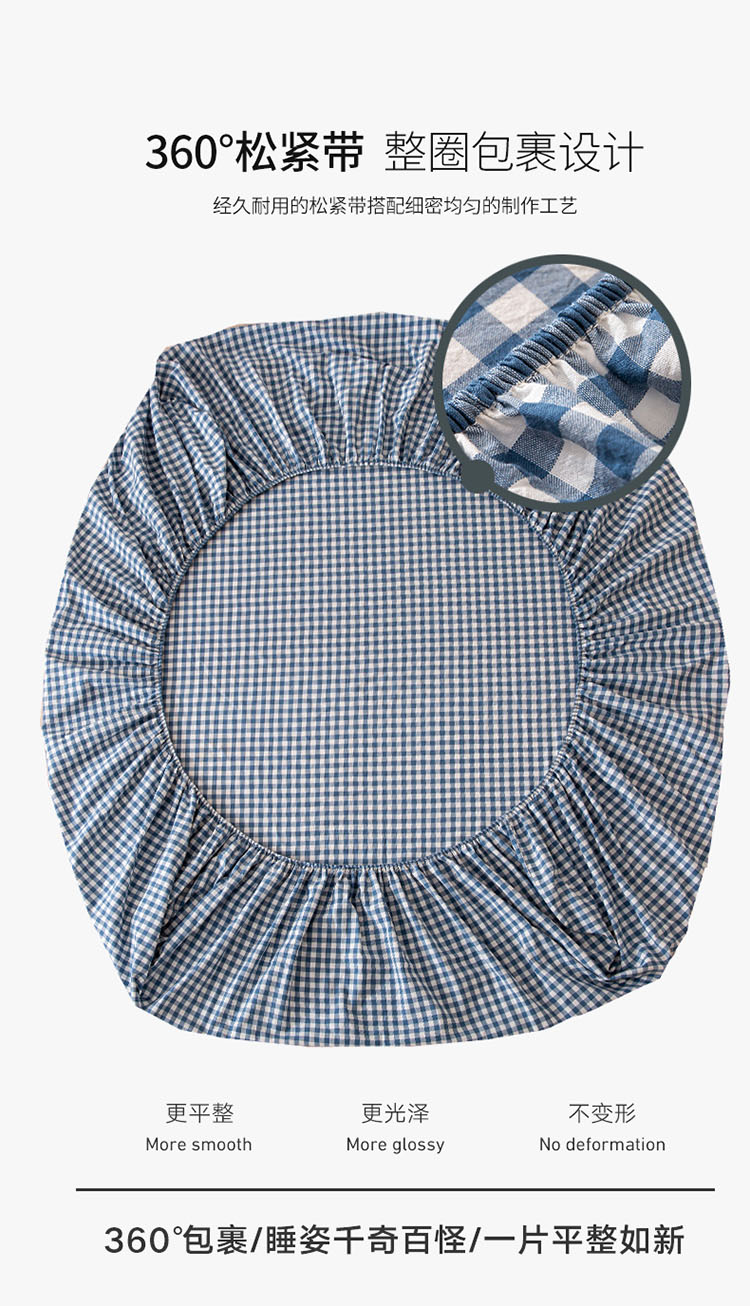 商品名称:ab家纺 2021新款全棉水洗棉单品床笠 蓝小格