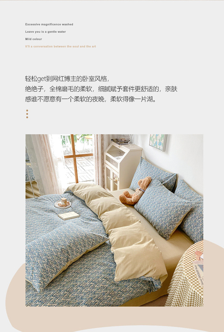 (总)田野 2022新款水洗棉小清新小碎花全棉四件套,花丛,花涧,绿婉,曼舞,桃夭,甜馨草莓,兔兔,银杏