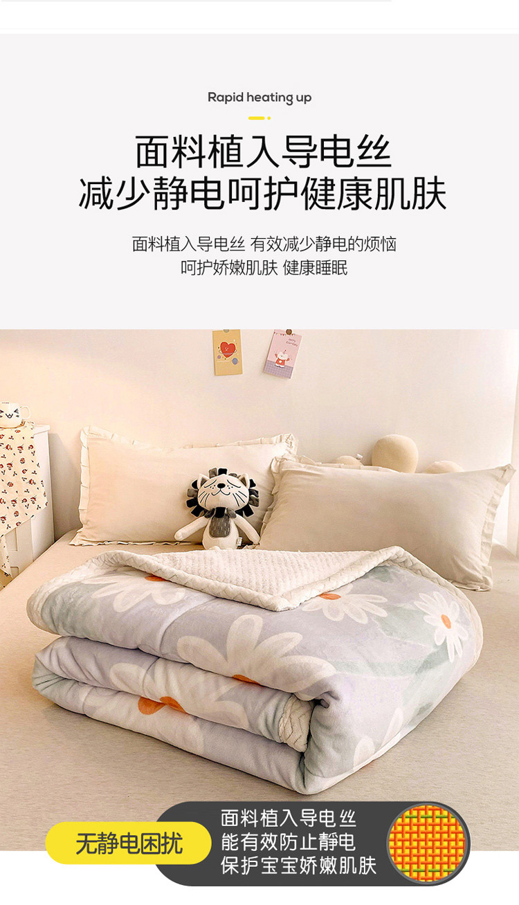 商品名称:慕尚 2022新款牛奶绒贝贝绒三层加厚毛毯 蓝菊