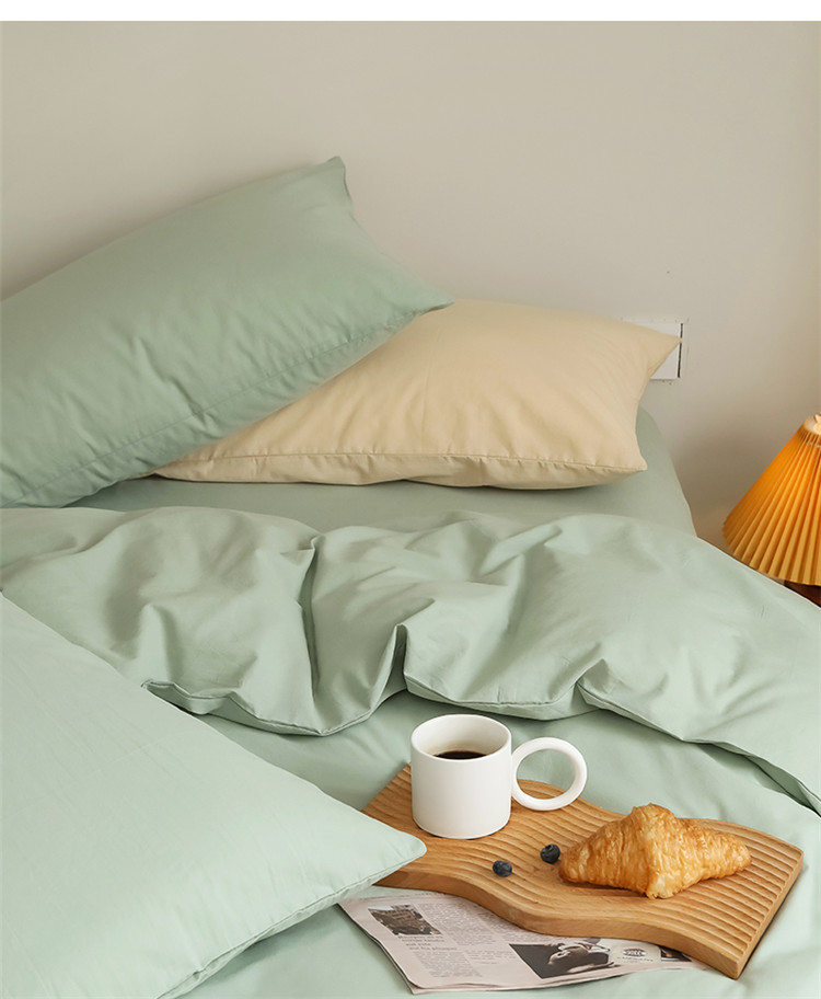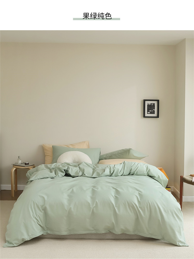 当前位置: 91家纺网 > 商品网购 > 床品套件 > 四件套 > 全棉普通四件套 > 寐眠 2021新款A类40支全棉撞色四件套 豆绿纯色