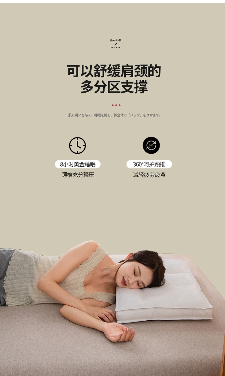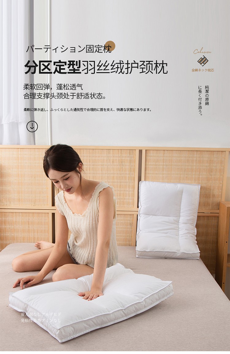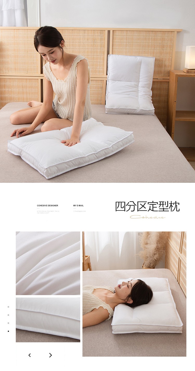 当前位置: 91家纺网 > 商品网购 > 枕头/枕芯/保健枕/颈椎枕 > 普通枕芯 > 锦绣万家 2021新款全棉分区定型枕水洗羽丝绒护颈枕 四分区定型枕