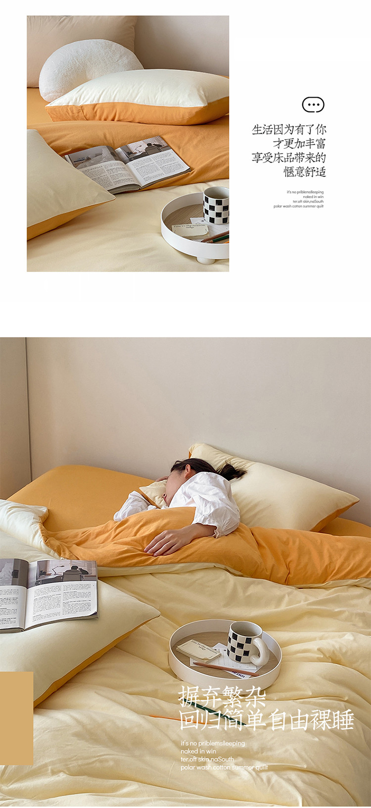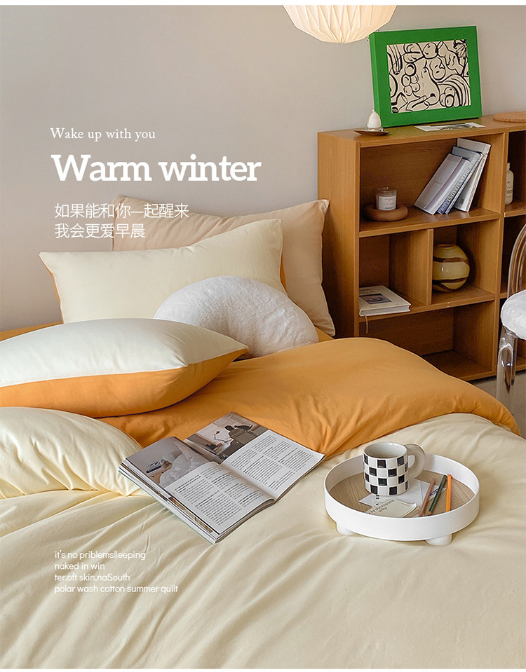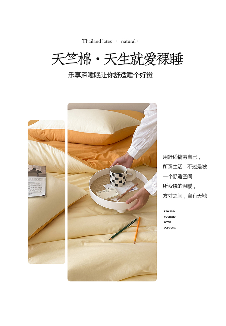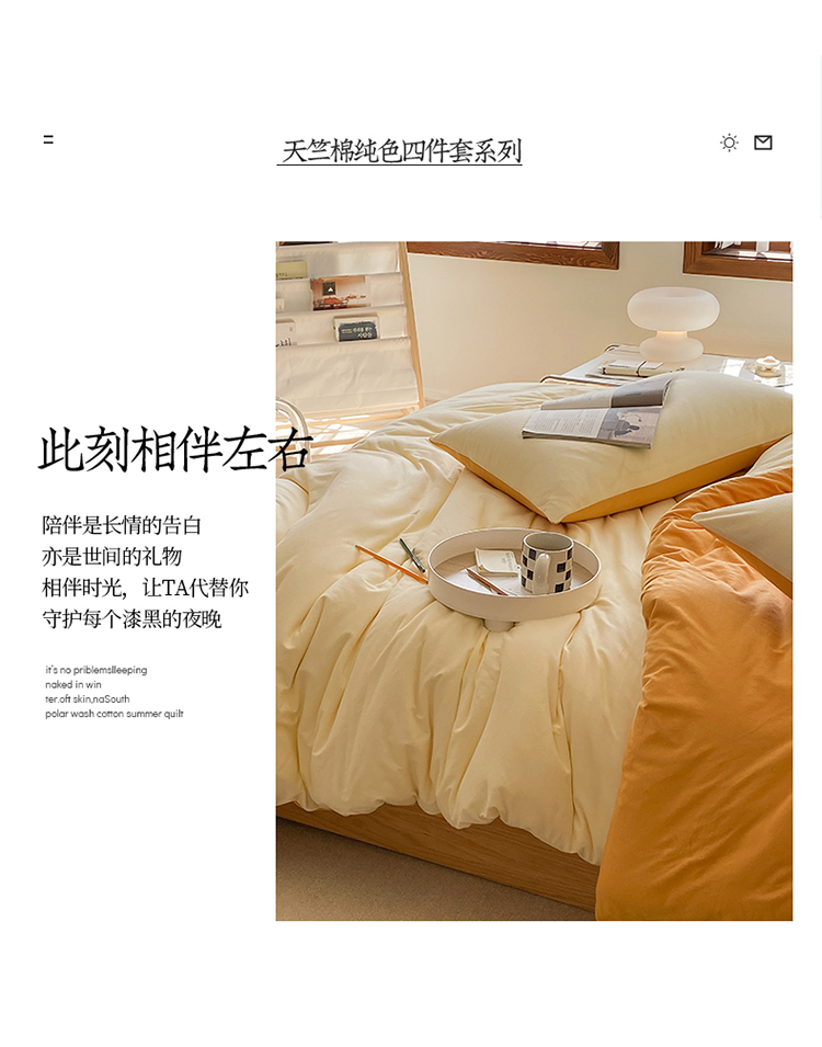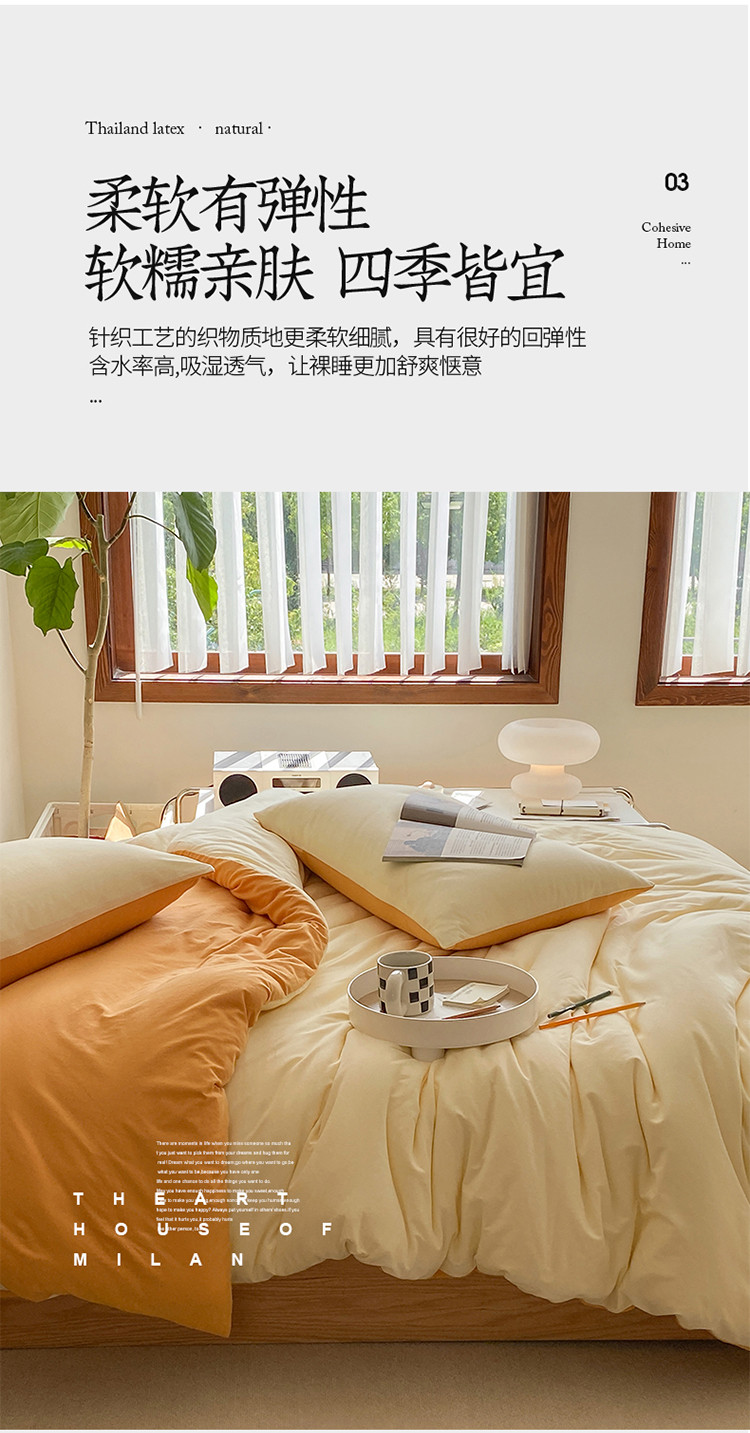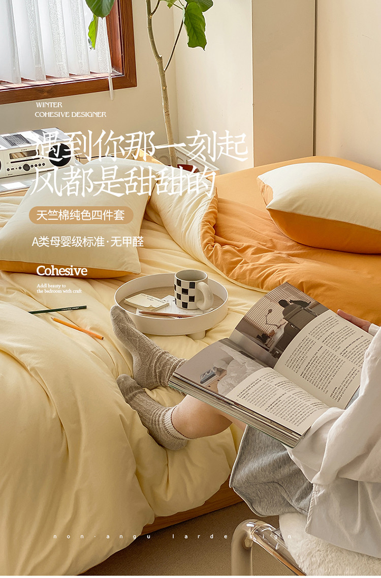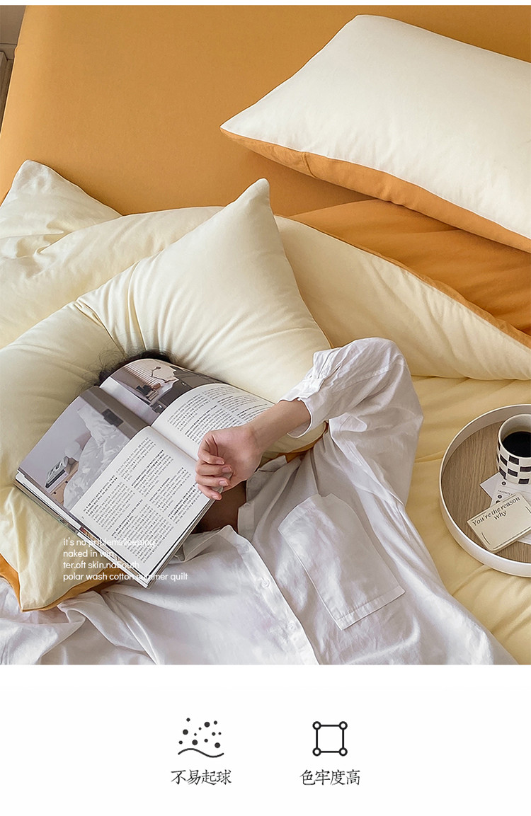 当前位置: 91家纺网 > 商品网购 > 床品套件 > 四件套 > 全棉普通四件套 > 华超针织 2021新款全棉天竺棉纯色双拼四件套 奶黄拼鹅黄
