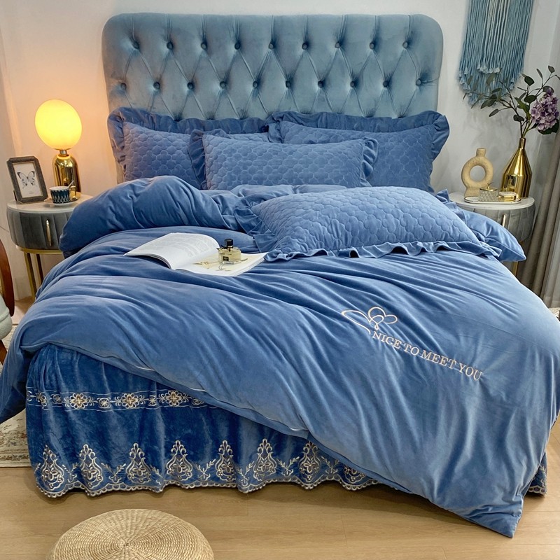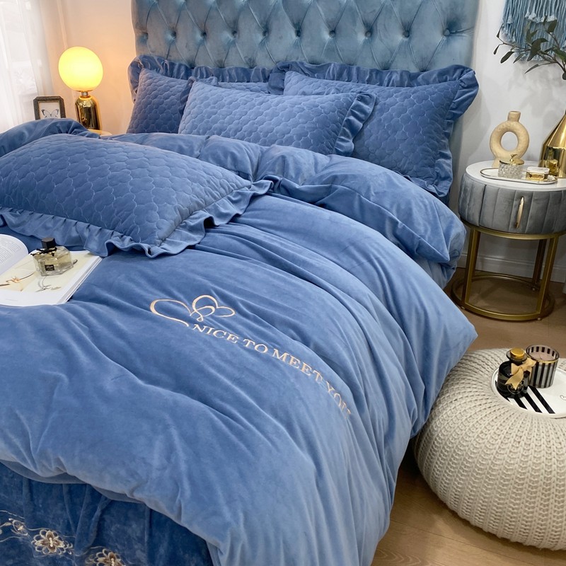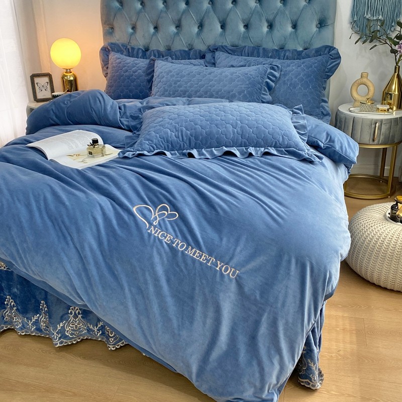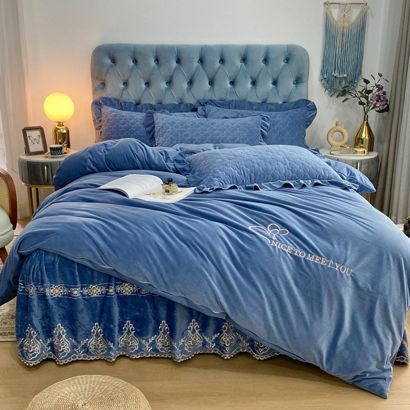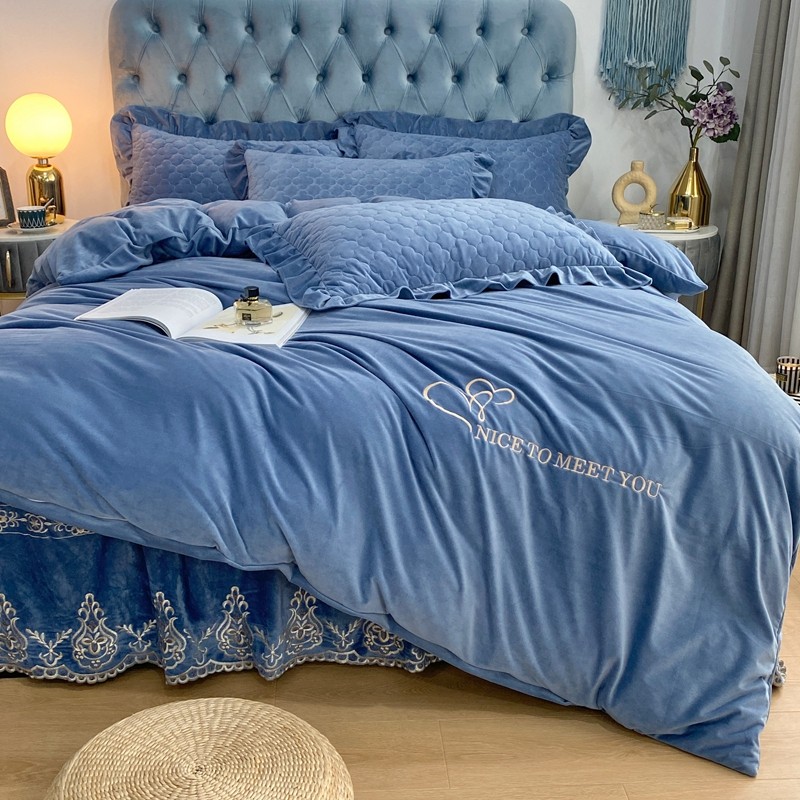 商品名称:星尚 2021新款秋冬高定婴儿绒夹棉绣花床裙四件套 蔚蓝