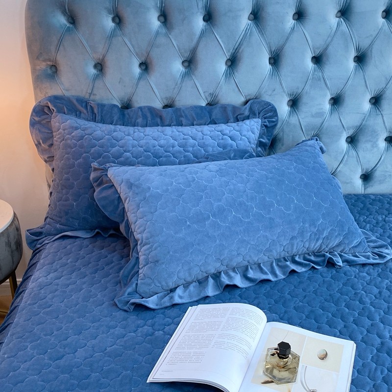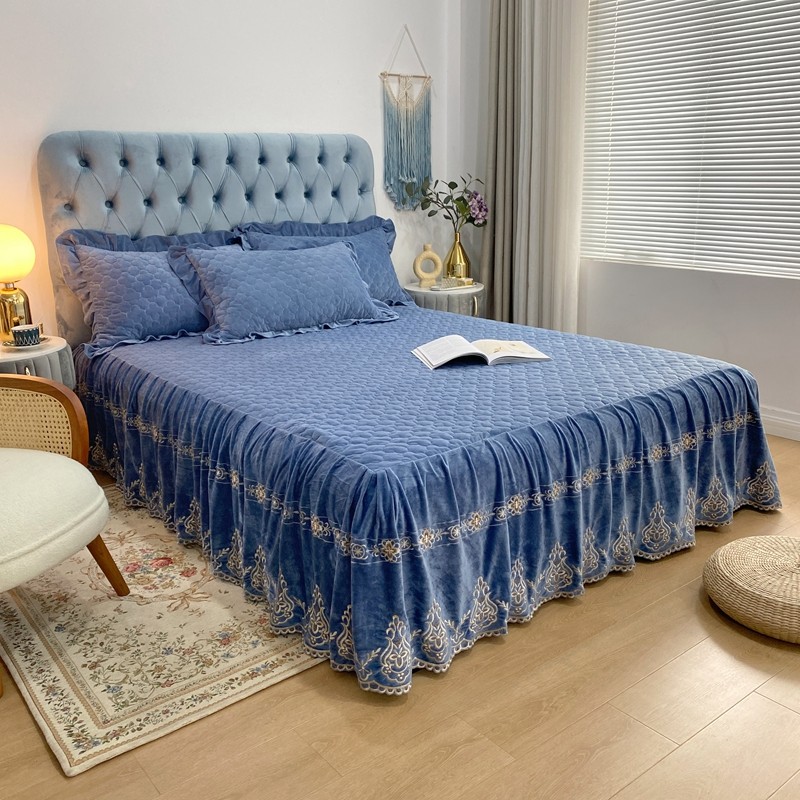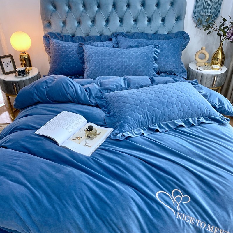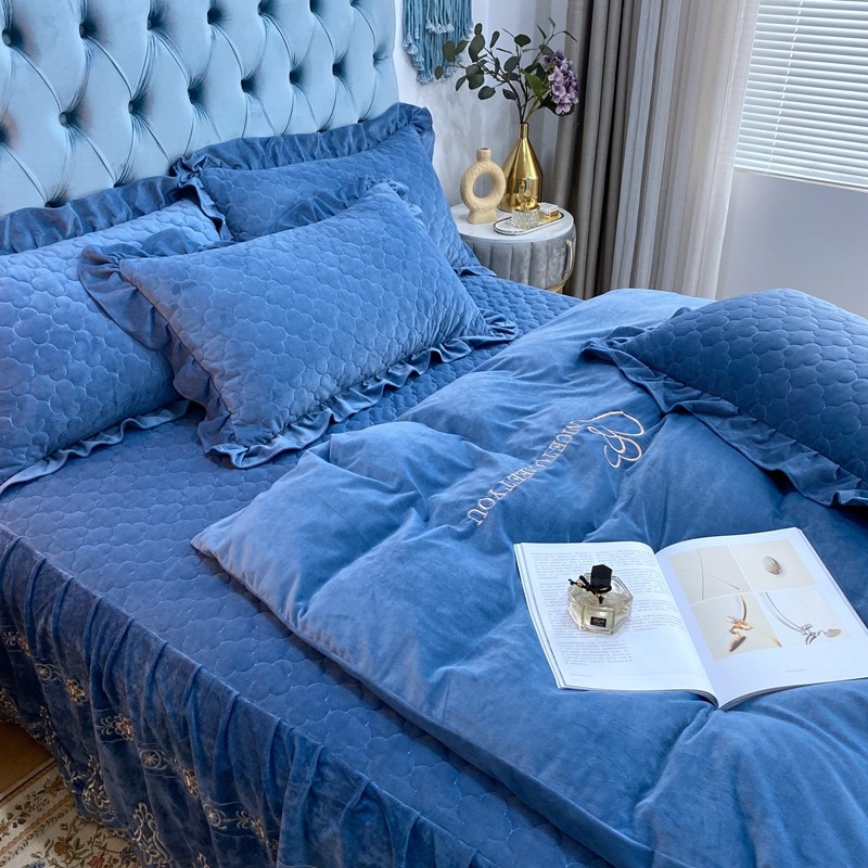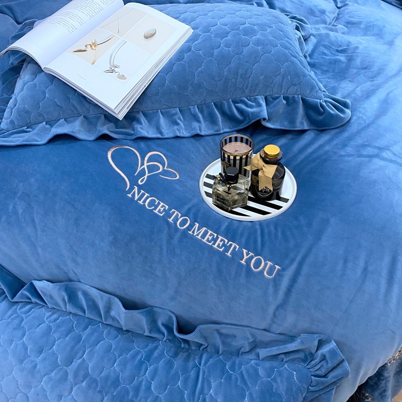 星尚 2021新款秋冬高定婴儿绒夹棉绣花床裙四件套 蔚蓝