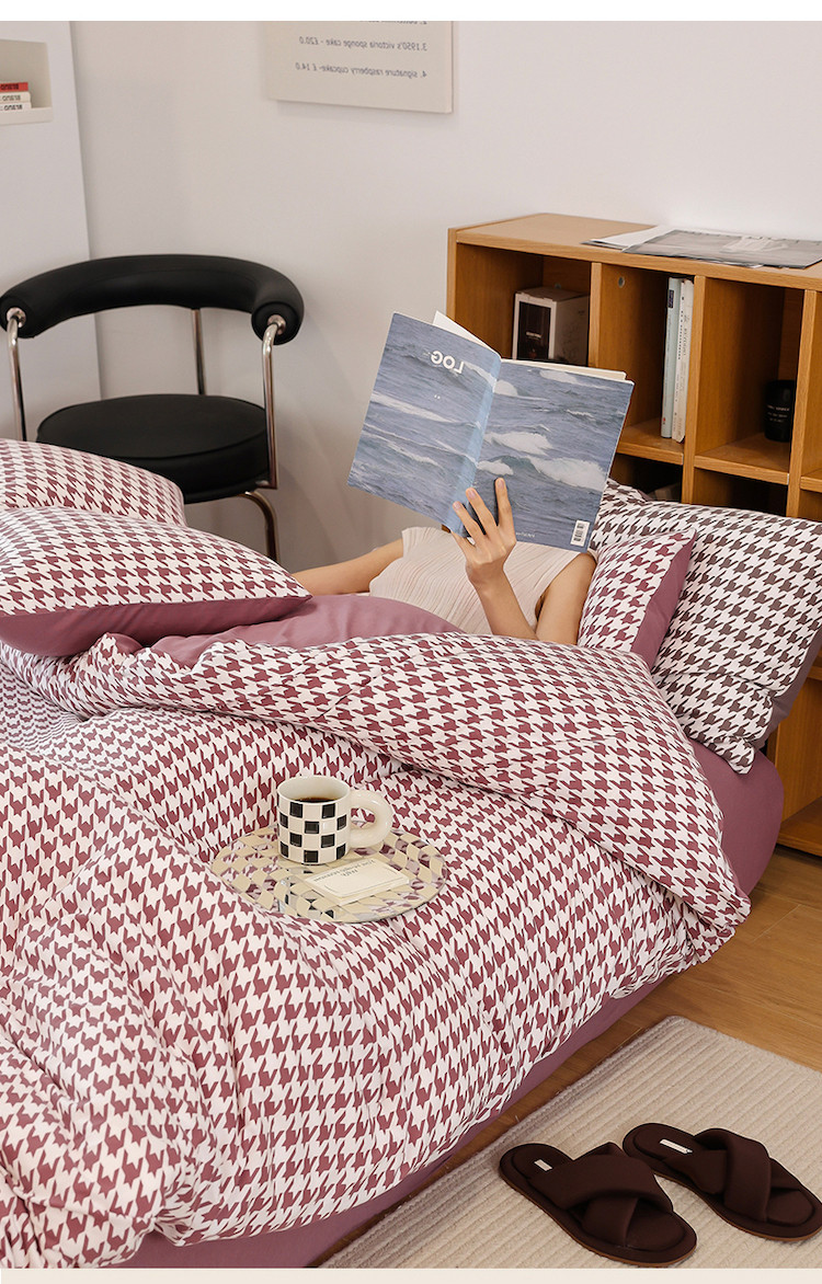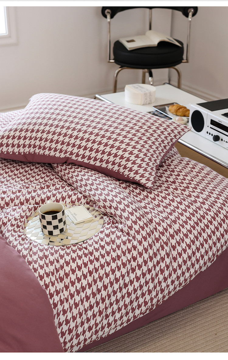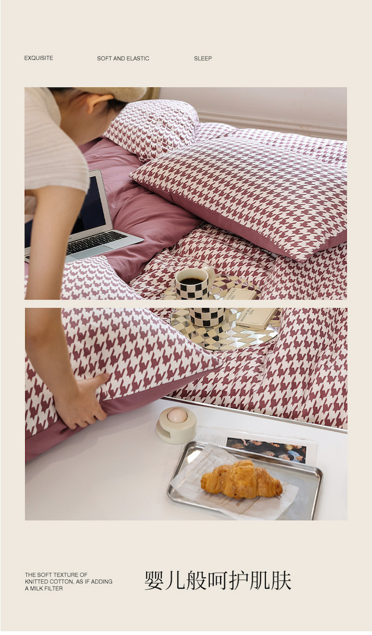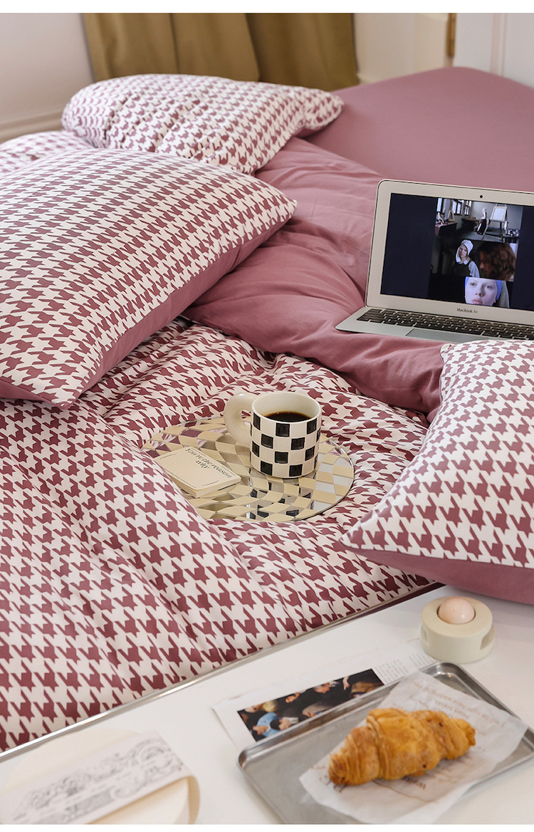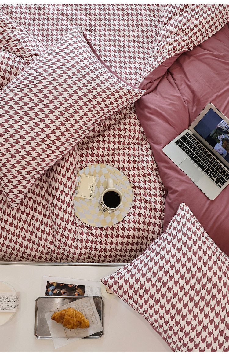 当前位置: 91家纺网 > 商品网购 > 床品套件 > 四件套 > 全棉普通四件套 > 华超针织 2021新款天竺棉千鸟格四件套 千鸟格豆沙