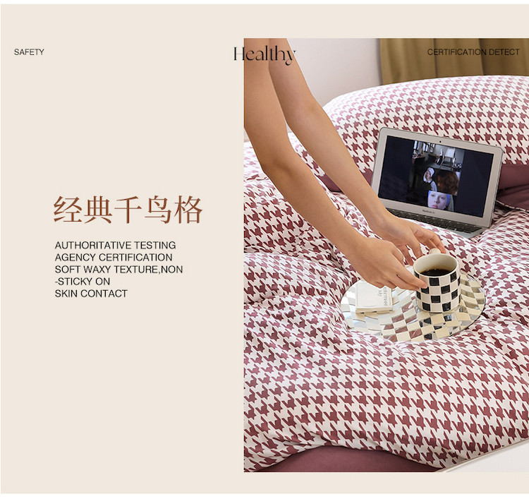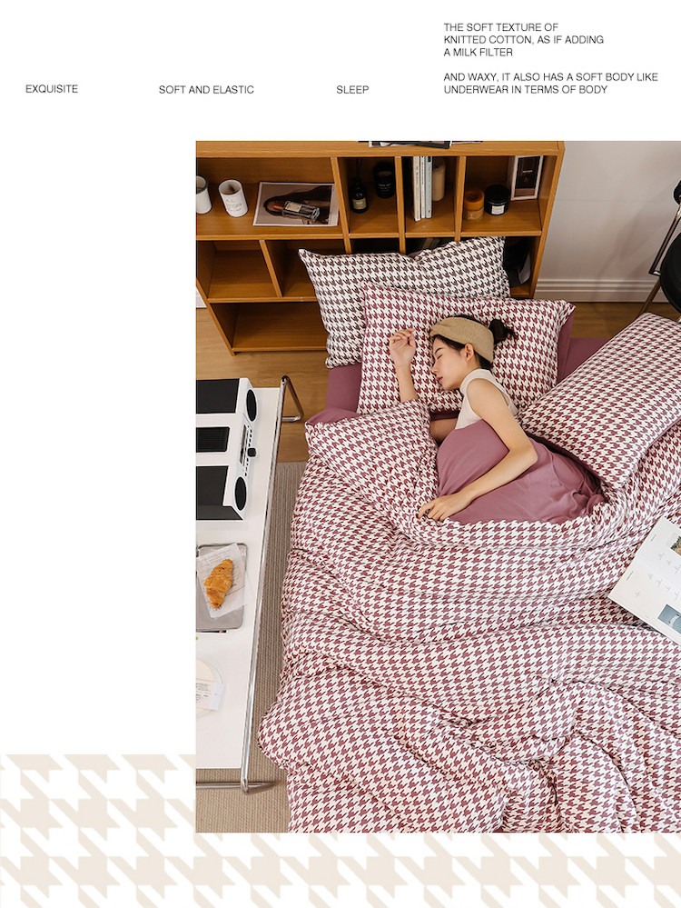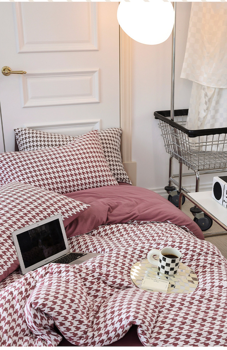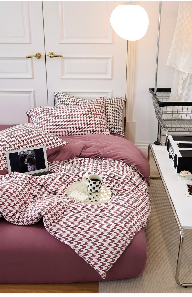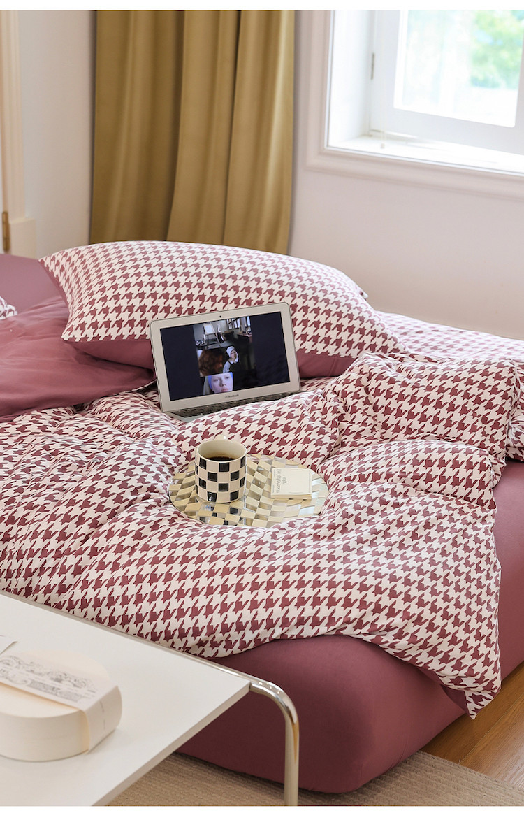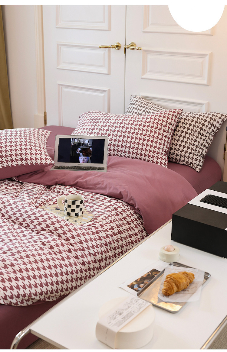 当前位置: 91家纺网 > 商品网购 > 床品套件 > 四件套 > 全棉普通四件套 > 华超针织 2021新款天竺棉千鸟格四件套 千鸟格豆沙
