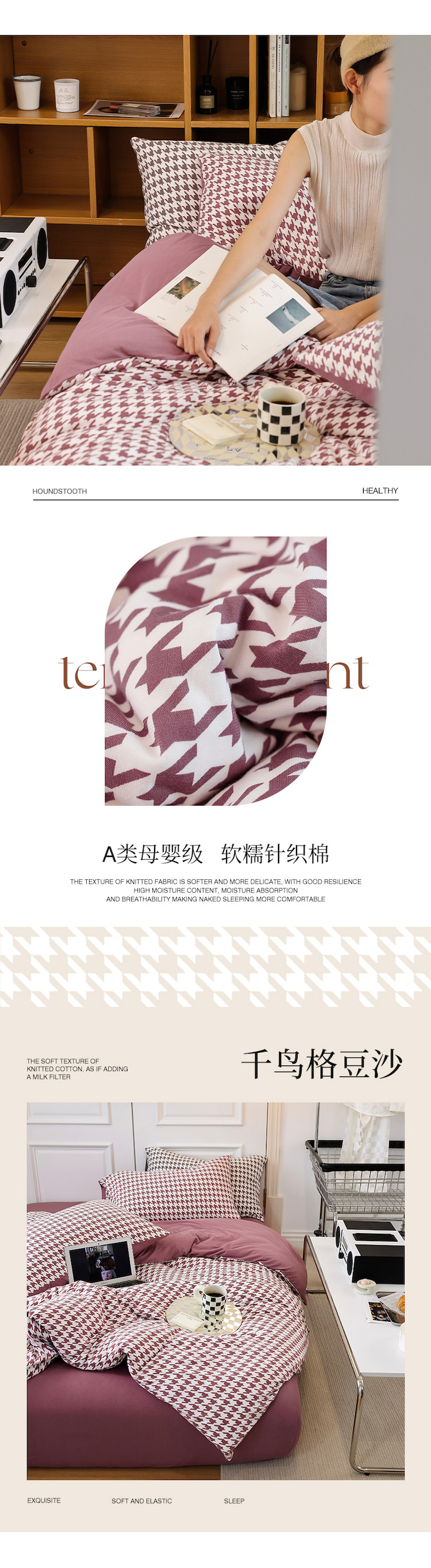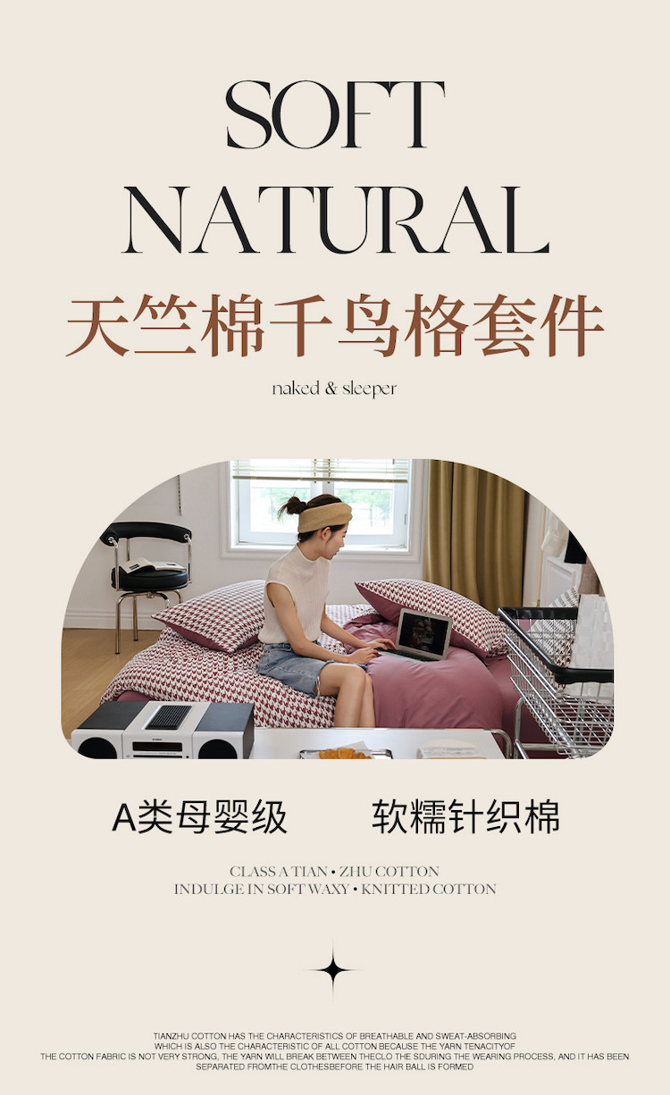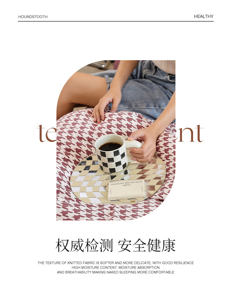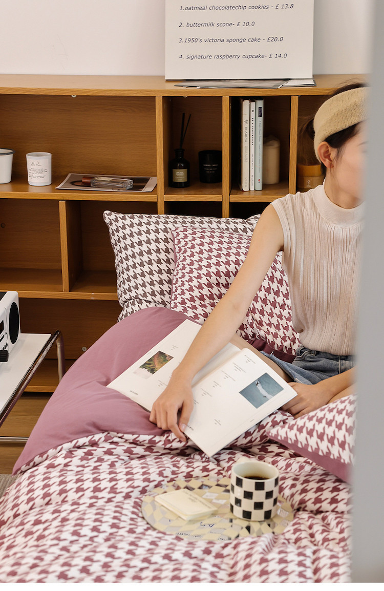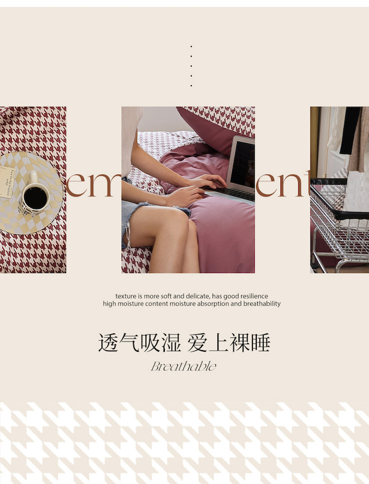 当前位置: 91家纺网 > 商品网购 > 床品套件 > 四件套 > 全棉普通四件套 > 华超针织 2021新款天竺棉千鸟格四件套 千鸟格豆沙