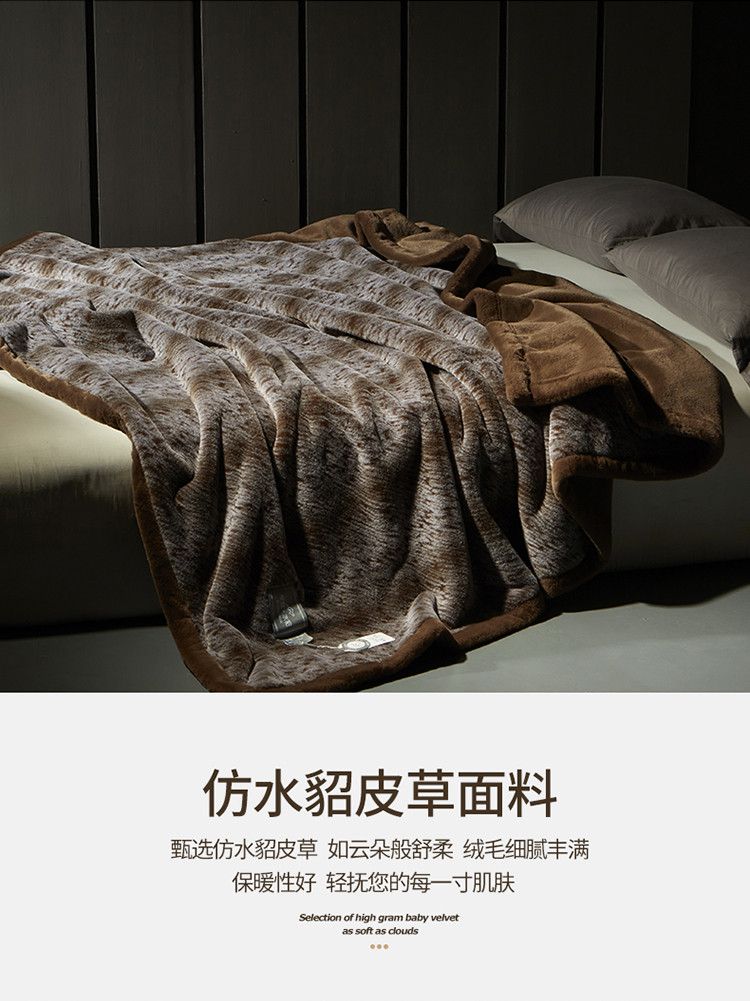 商品名称:凯轩毛毛毯毯子2024新款双层仿水貂皮草毛毯毯子 深褐色