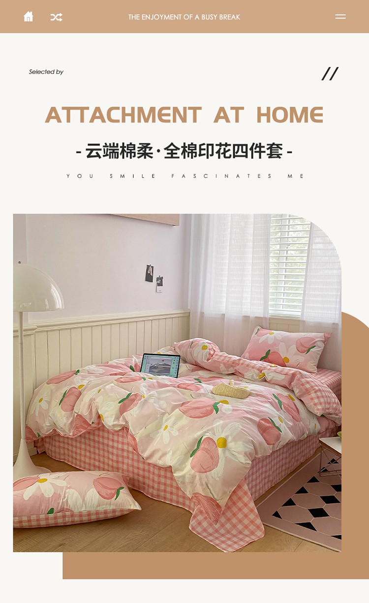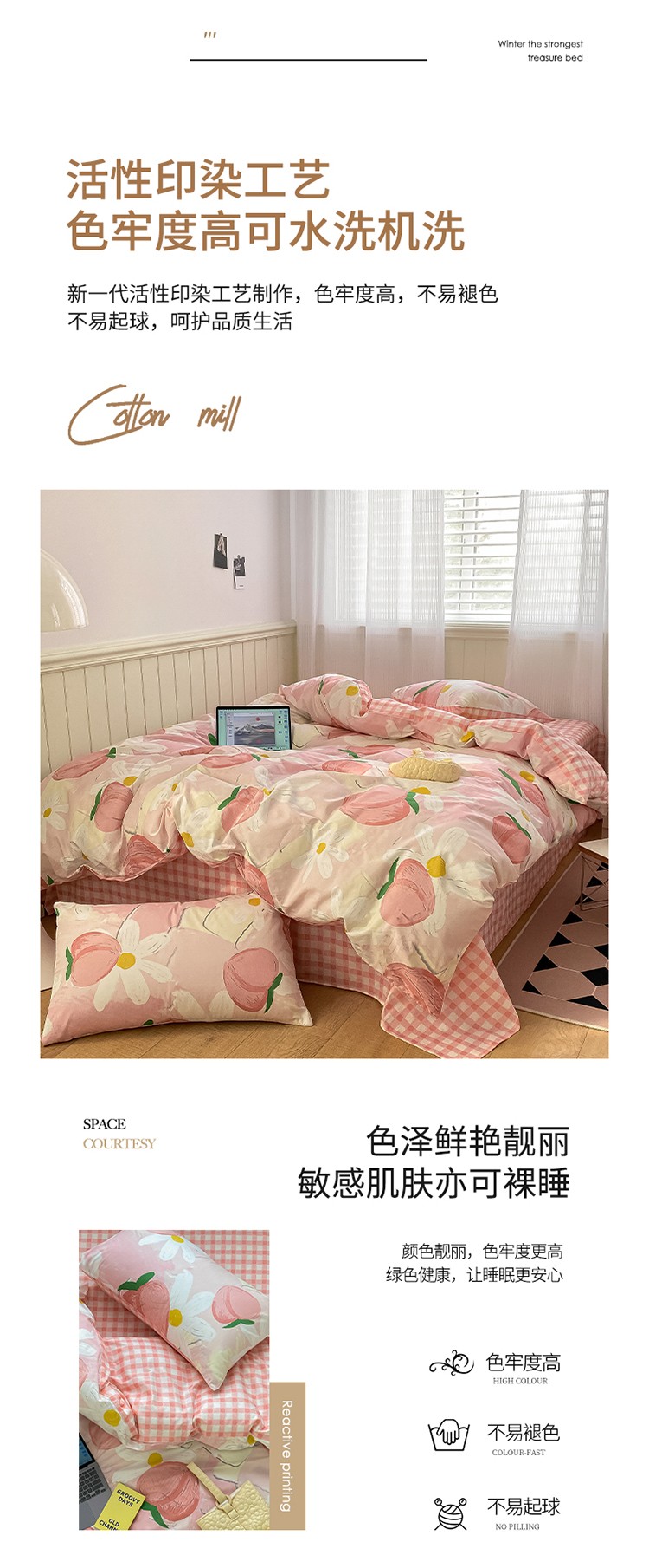 商品名称:雅居纺家纺 2022新款13070全棉印花四件套 小桃桃