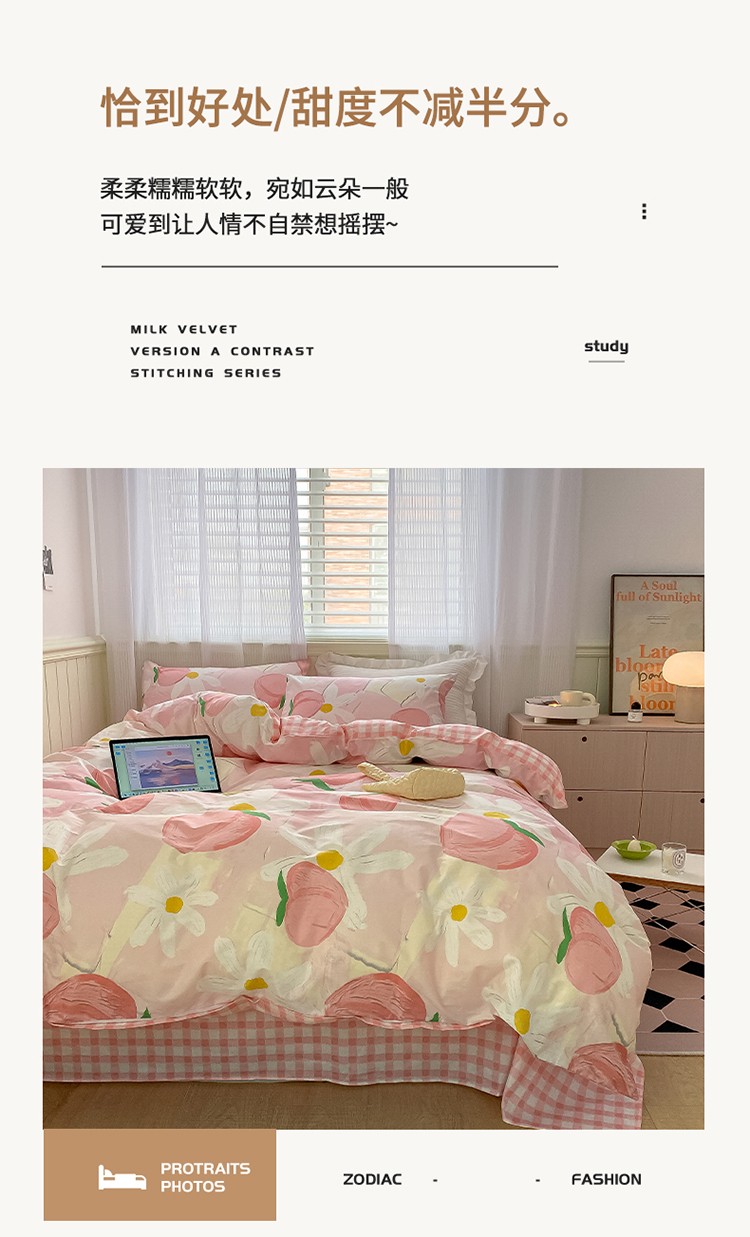(总)雅居纺家纺 2025新款高克重牛奶绒印花四件套,M粉,爱心恐龙,粉粉桃,粉色竖条,乖乖兔,蝴蝶结-粉,蝴蝶结-蓝,幻境-粉,简约绿条,经典豹纹,咖色竖条,开心龙,蓝墨花朵,蓝色竖条,蓝色小兔,蓝条猫咪,浪漫花香,秘境小兔,时尚爱心,树叶小兔子,竖条小花,四宫格,仙草,小煤球,幸运兔,休闲小兔,宇航熊