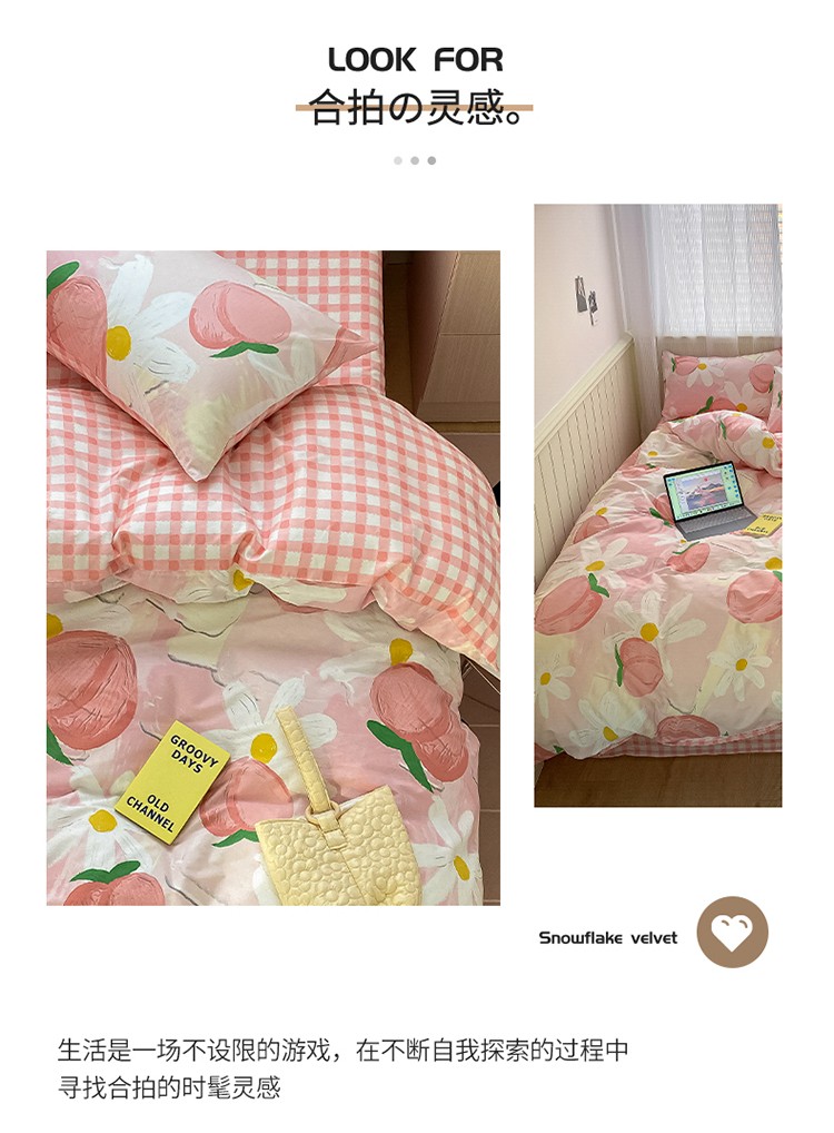 雅居纺家纺 2022新款13070全棉印花四件套 小桃桃