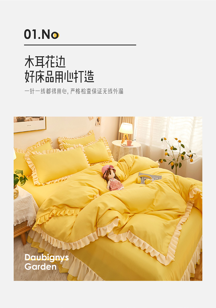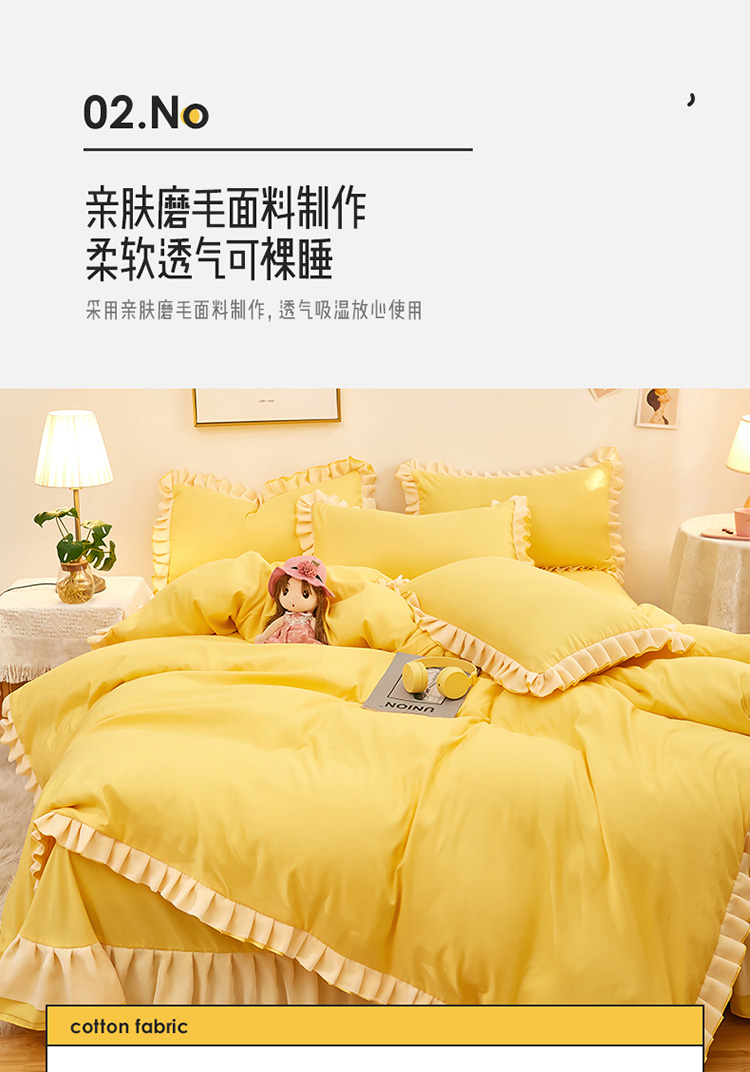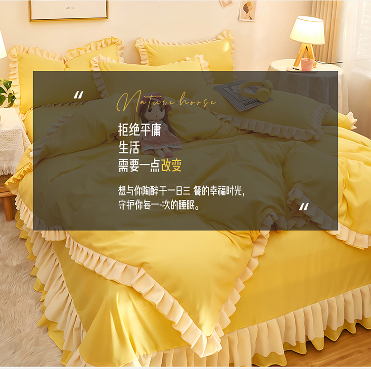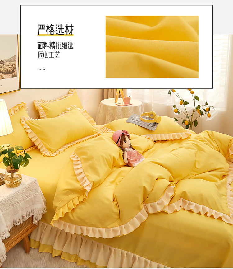 商品名称:莉莉安 2025新款韩版公主风亲肤四件套-爱恋系列 爱恋-布丁黄