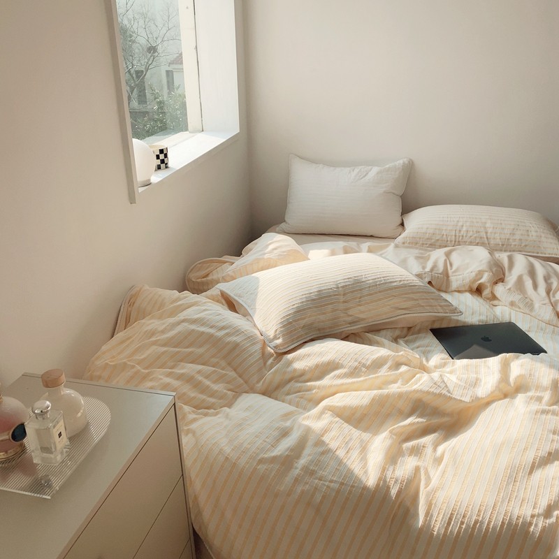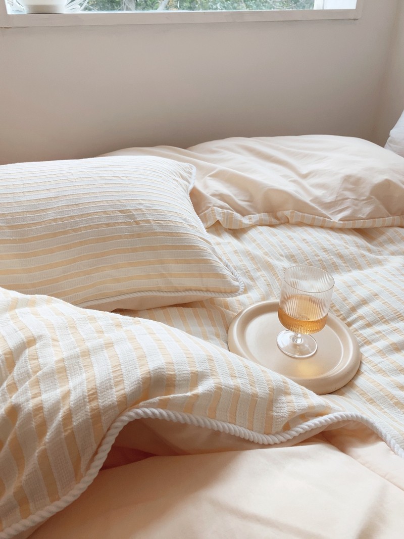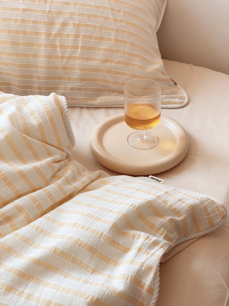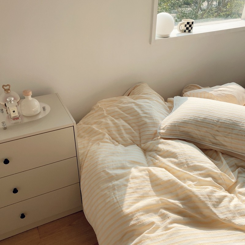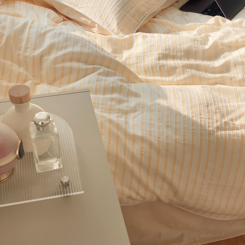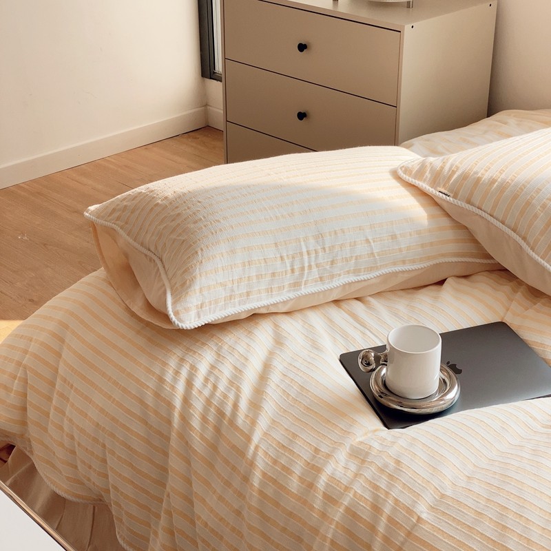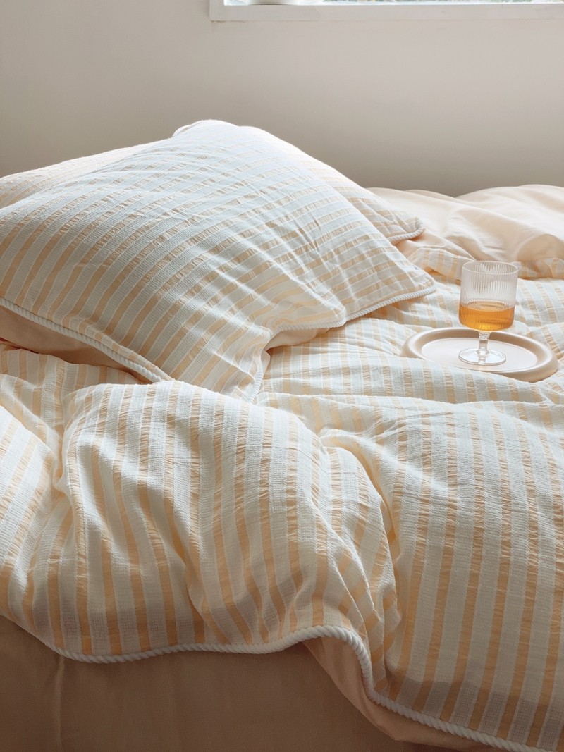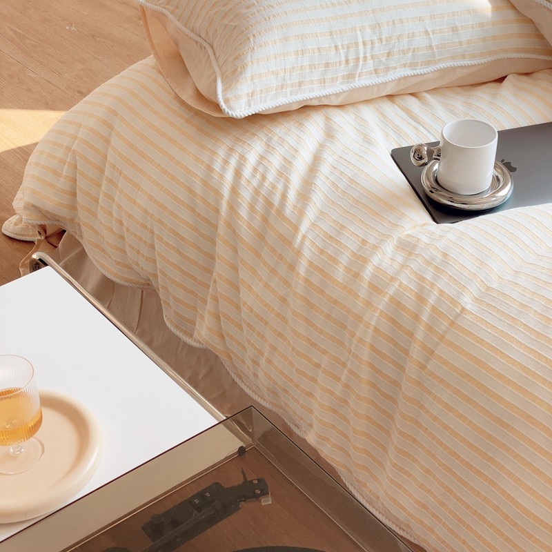 桔子家纺022新款全棉立体条纹提花泡泡纱四件套系列 条纹提花奶黄