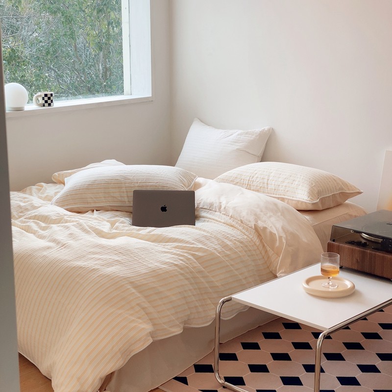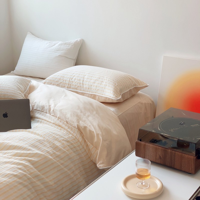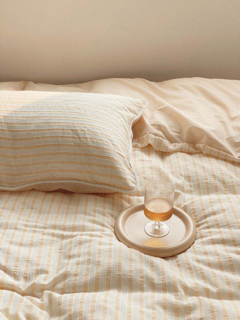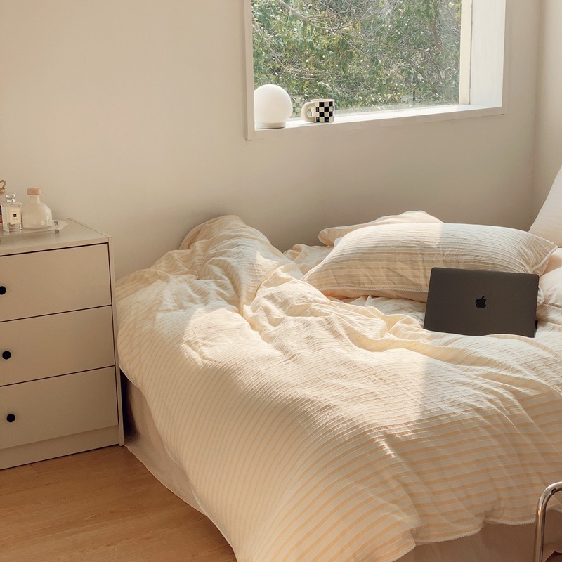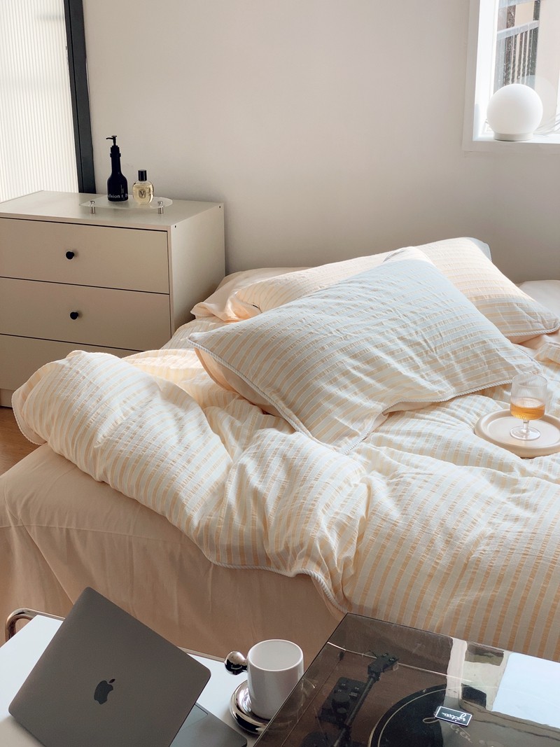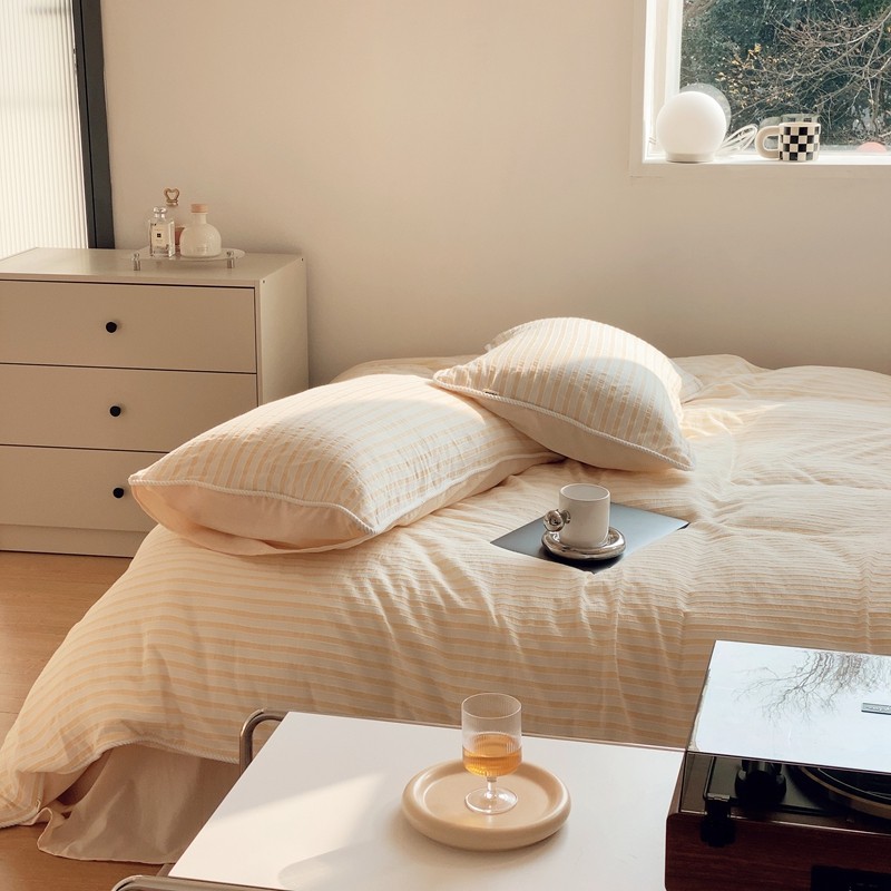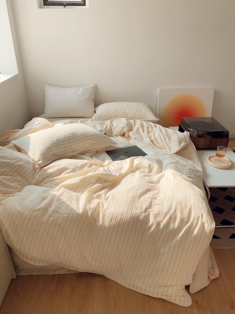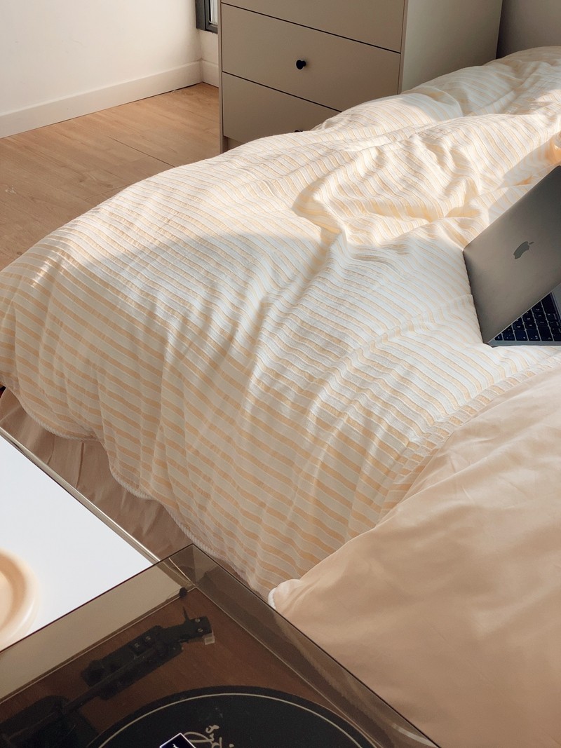 桔子家纺022新款全棉立体条纹提花泡泡纱四件套系列 条纹提花奶黄