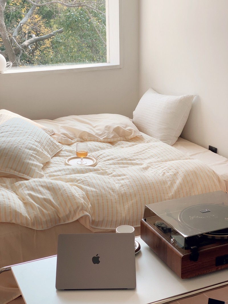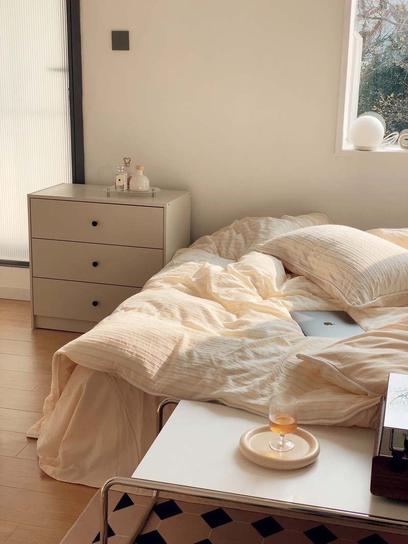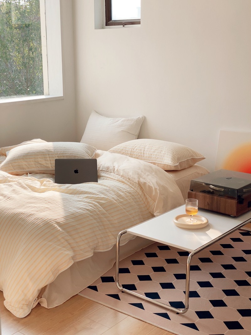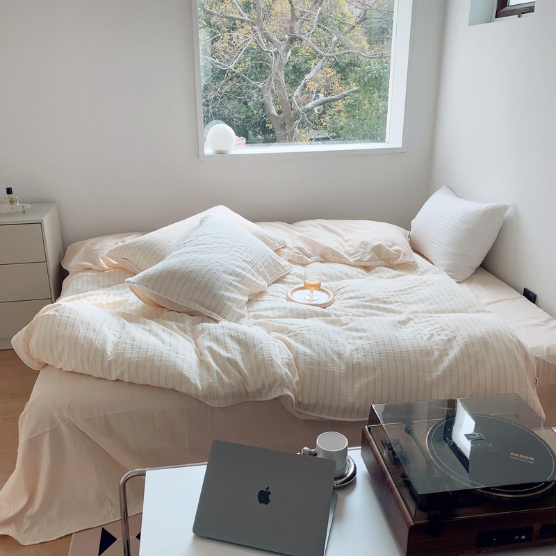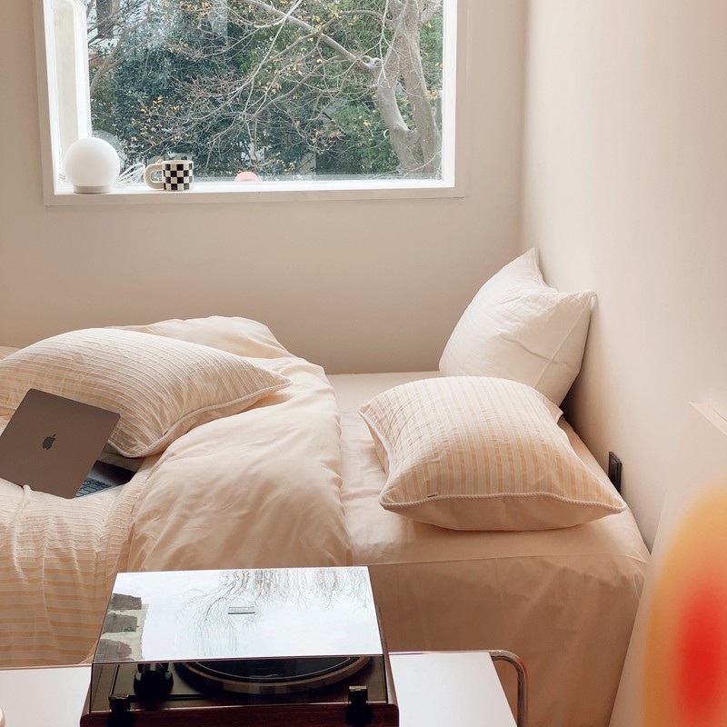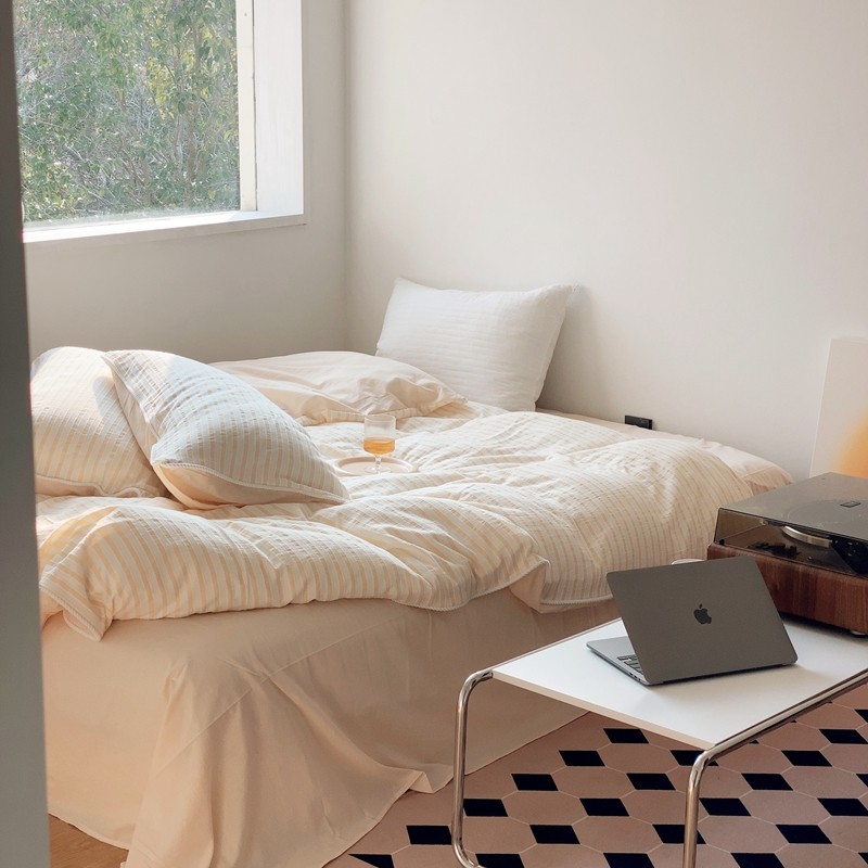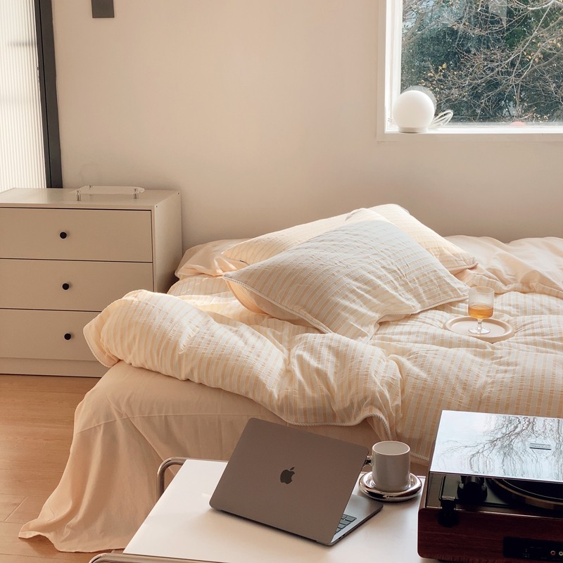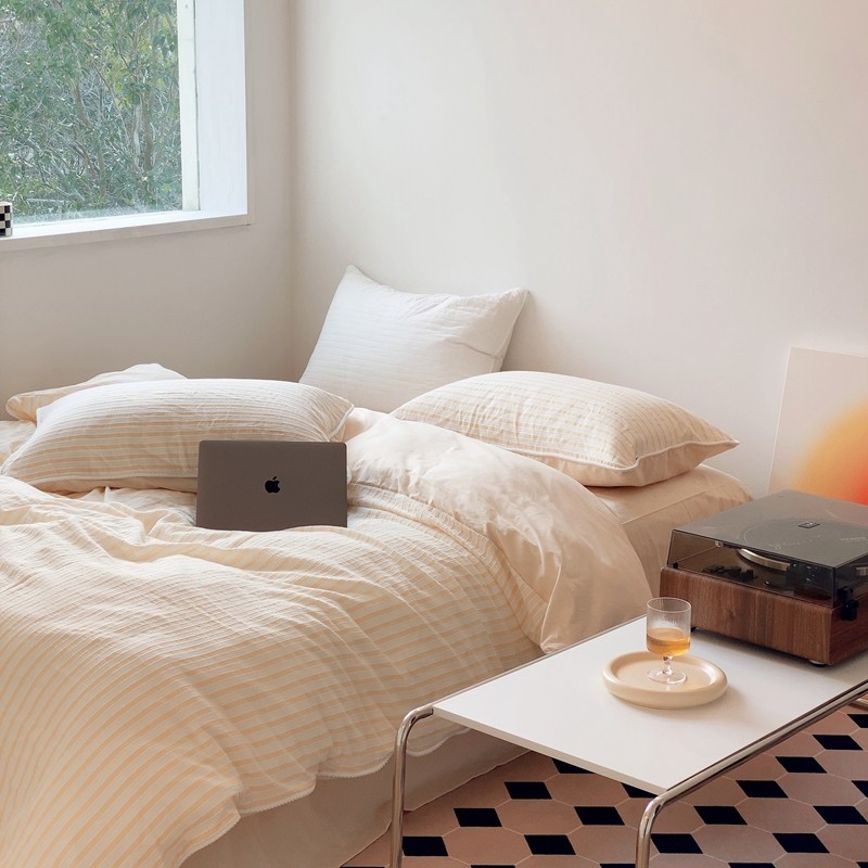 桔子家纺022新款全棉立体条纹提花泡泡纱四件套系列 条纹提花奶黄