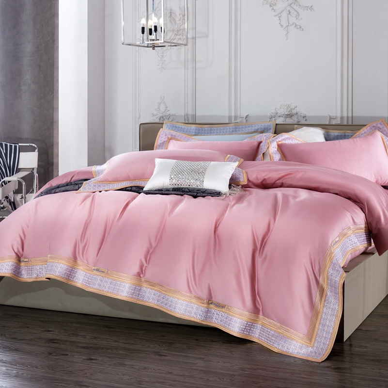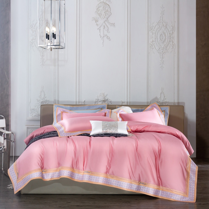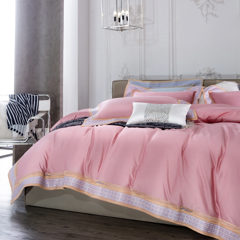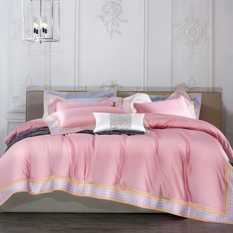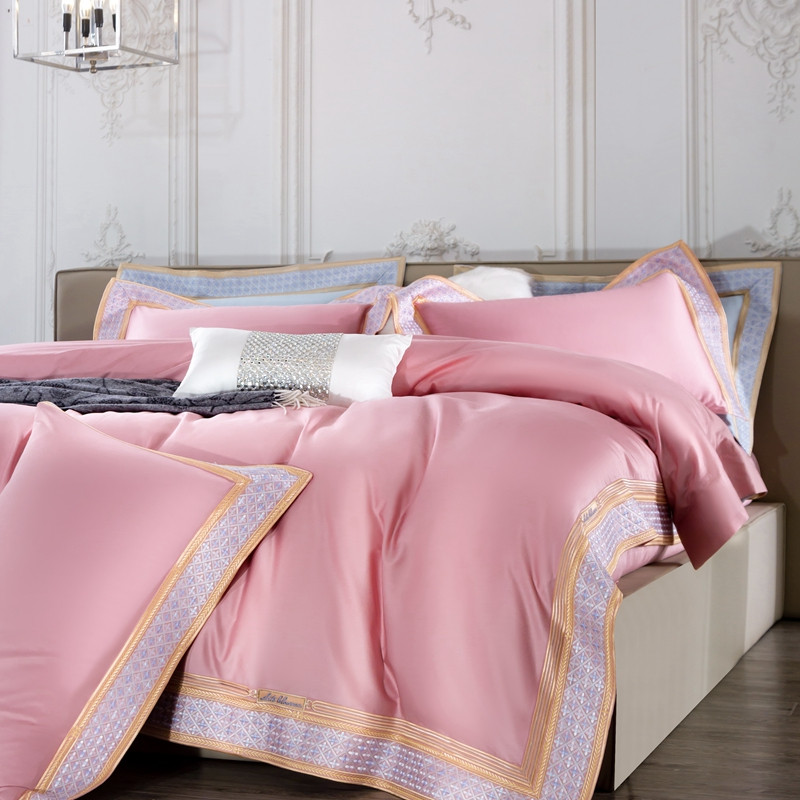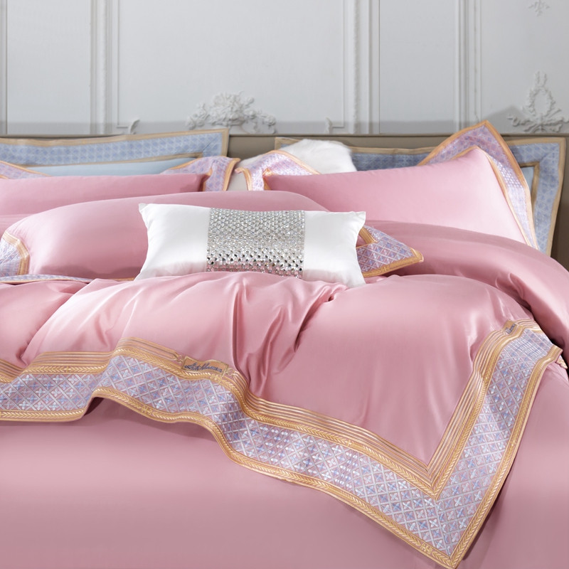 缔缦家纺2022新款100s澳棉刺绣系列四件套-卡萨帝碧玉粉