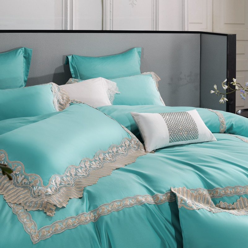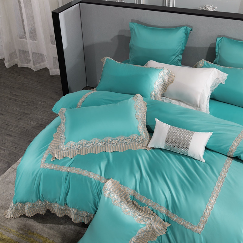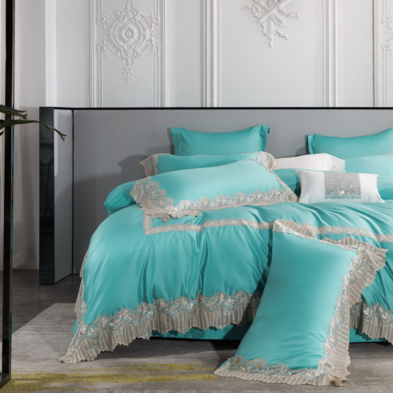 缔缦家纺 2022新款100支长绒棉蕾丝系列四件套-莫奈 蒂芙尼蓝