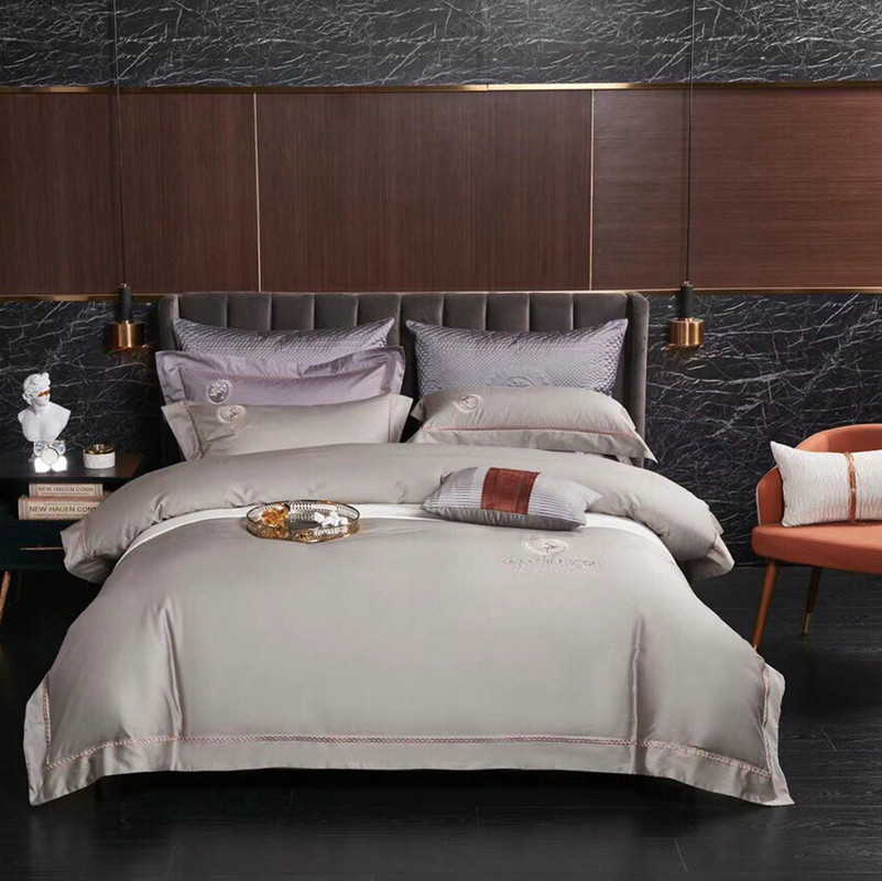 总玖玖爱家纺 纯棉100支贡缎长绒棉刺绣被套三件套四件套加大四件套,白色,高级灰,卡其,蓝灰,绿色,浅桔,深蓝,紫豆沙