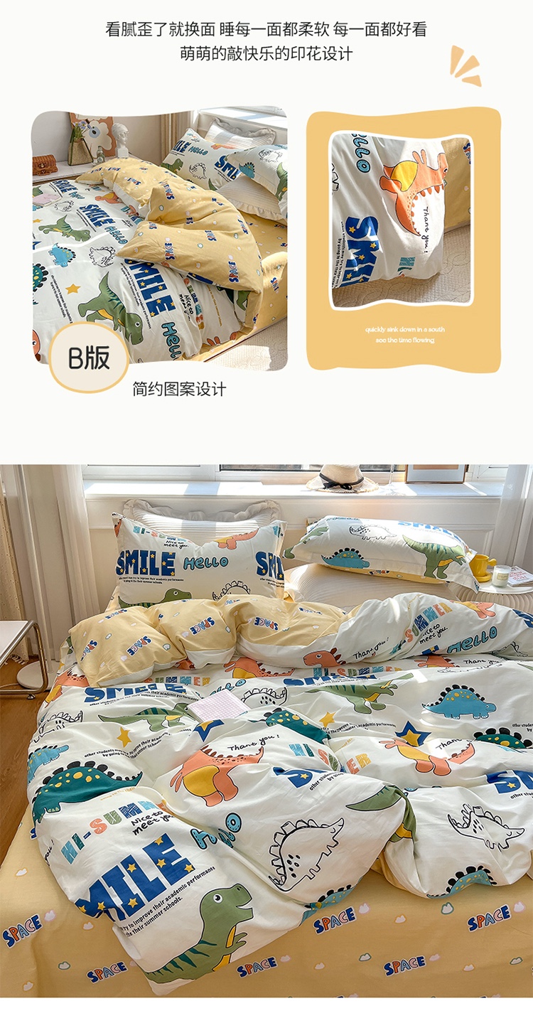 BOSS 2024新款小清新斜纹全棉四件套 恐龙漫画