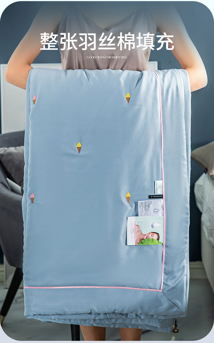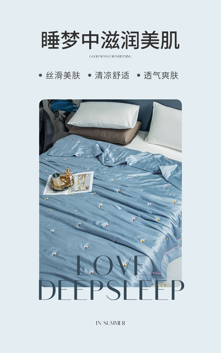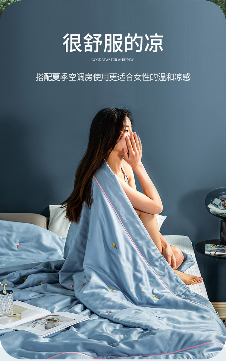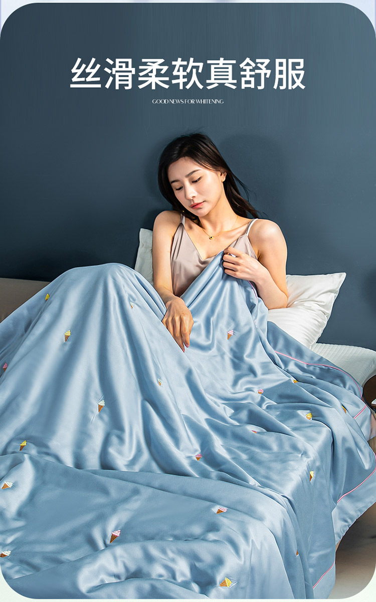 商品名称:被靠被 2023新款莫代尔烟酰胺刺绣夏被冰激凌系列 云水蓝